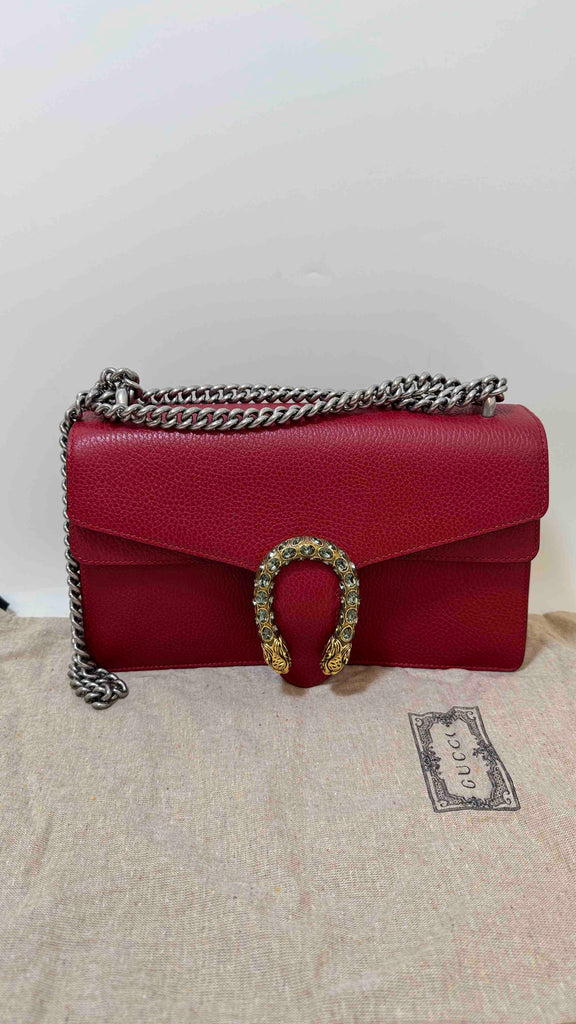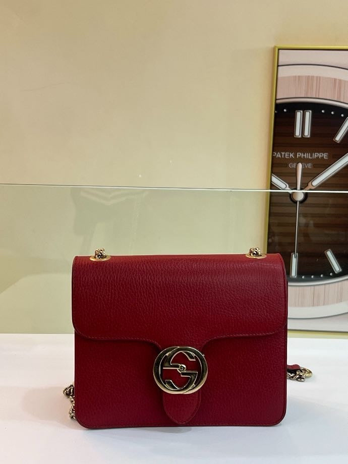GUCCI Bamboo Leather Red Handbag Shoulder Bag Classic Purse LB125948