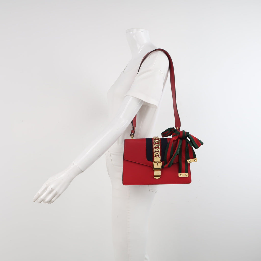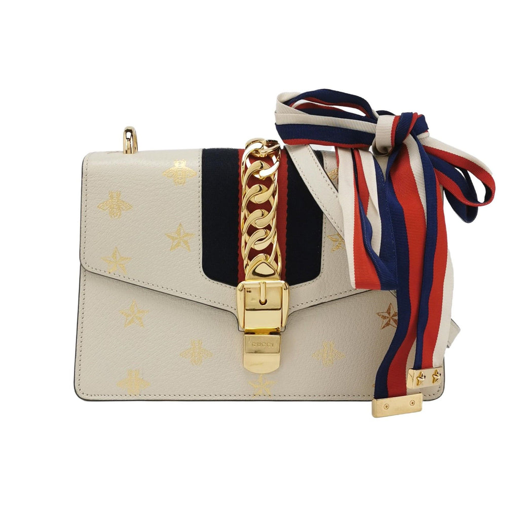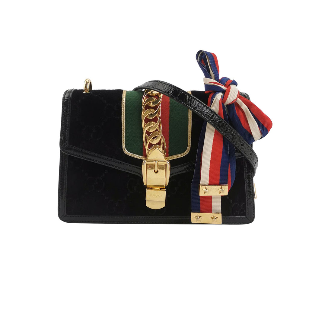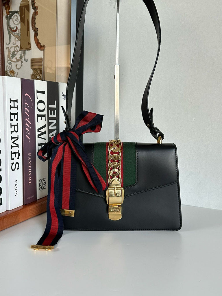 Shop authentic new and used designer handbags from the iconic Gucci Sylvie line at ShopShops. Discover vintage Gucci bags, including the beloved Sylvie shoulder bag, crossbody bags, and totes. With its signature chain detail and web stripe, the Gucci Sylvie bag is a true statement piece. Explore a wide selection of designer bags in various sizes, colors, and materials to complete your luxury collection.