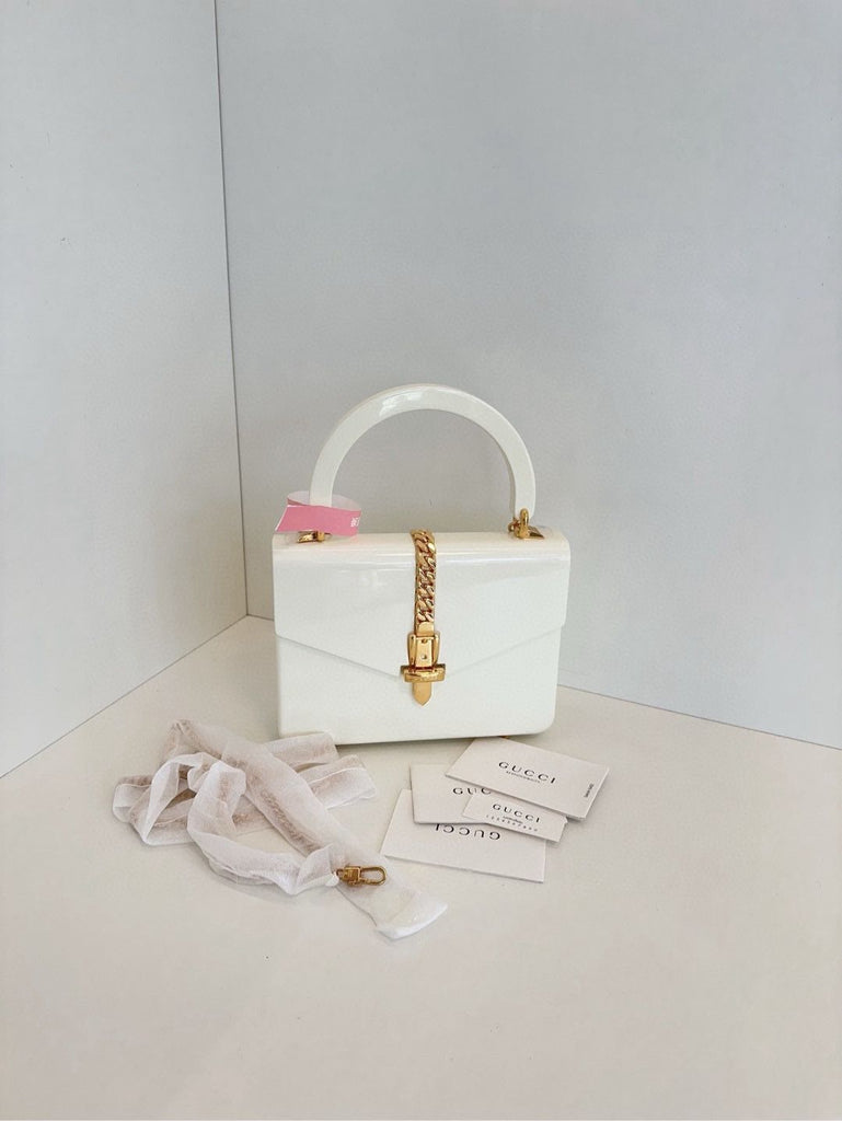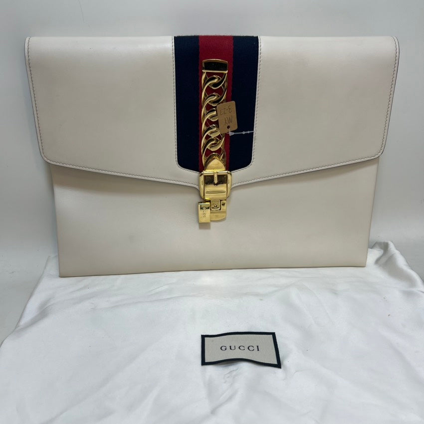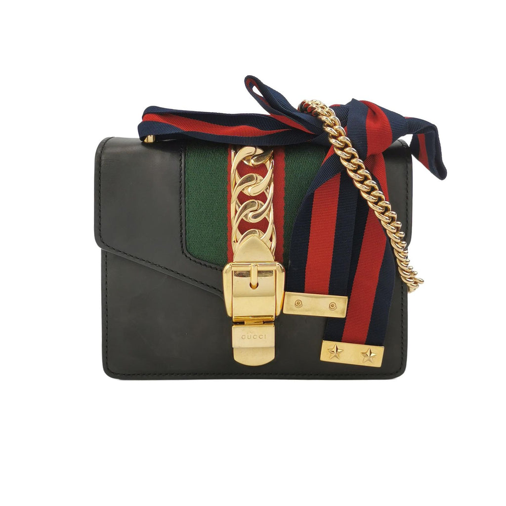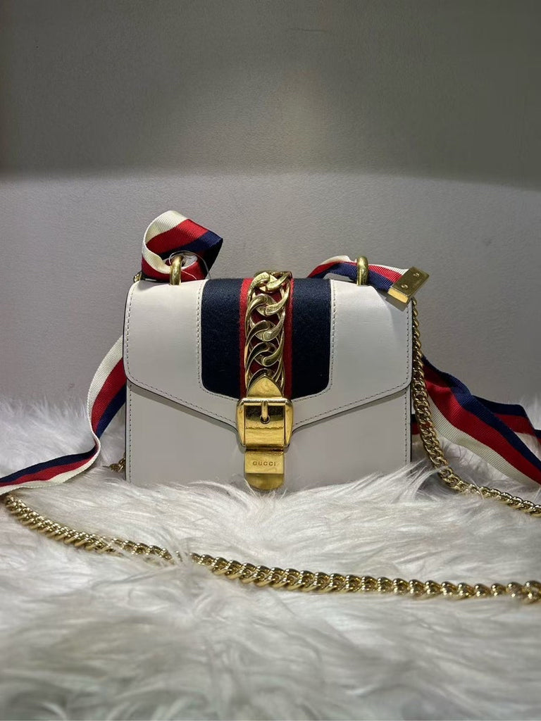 Shop authentic new and used designer handbags from the iconic Gucci Sylvie line at ShopShops. Discover vintage Gucci bags, including the beloved Sylvie shoulder bag, crossbody bags, and totes. With its signature chain detail and web stripe, the Gucci Sylvie bag is a true statement piece. Explore a wide selection of designer bags in various sizes, colors, and materials to complete your luxury collection.
