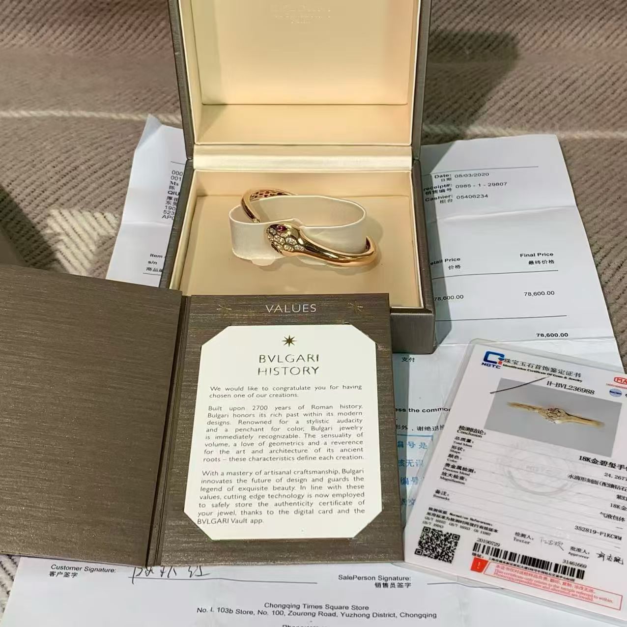 CONDITION Fair Good Very Good Great Excellent Pristine Condition Details Minor signs of use Serial Model • - Authentication • Entrupy OVERVIEW Metal Gold Metal Purity 18kt Main Stone Diamonds Main Stone Color White Color Rose Gold Size Adjustable Introducing the exquisite Bvlgari Serpenti 18kt rose gold diamonds bangle, a timeless piece that epitomizes luxury and elegance. Crafted from 18kt rose gold, this adjustable bangle features dazzling white diamonds that enhance its sophisticated design. As a pre-owned item in very good condition (8/10), it shows only minor signs of use, ensuring both quality and value. Authenticated by Entrupy, this iconic Bvlgari accessory is perfect for those seeking refined style and enduring charm. Elevate your collection with this stunning statement piece, embodying the perfect blend of craftsmanship and glamour.