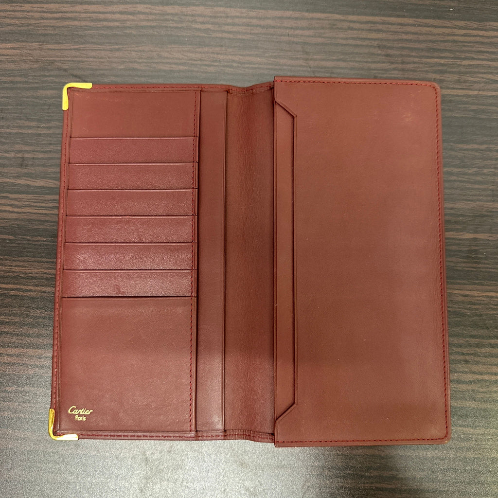 Cartier Vintage Bifold Leather Bordeaux Red Wallet Large LB124979