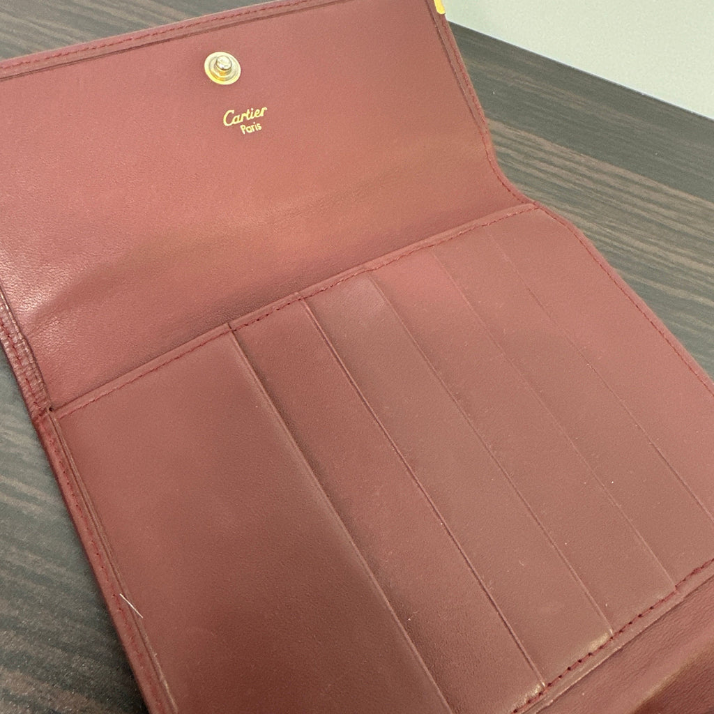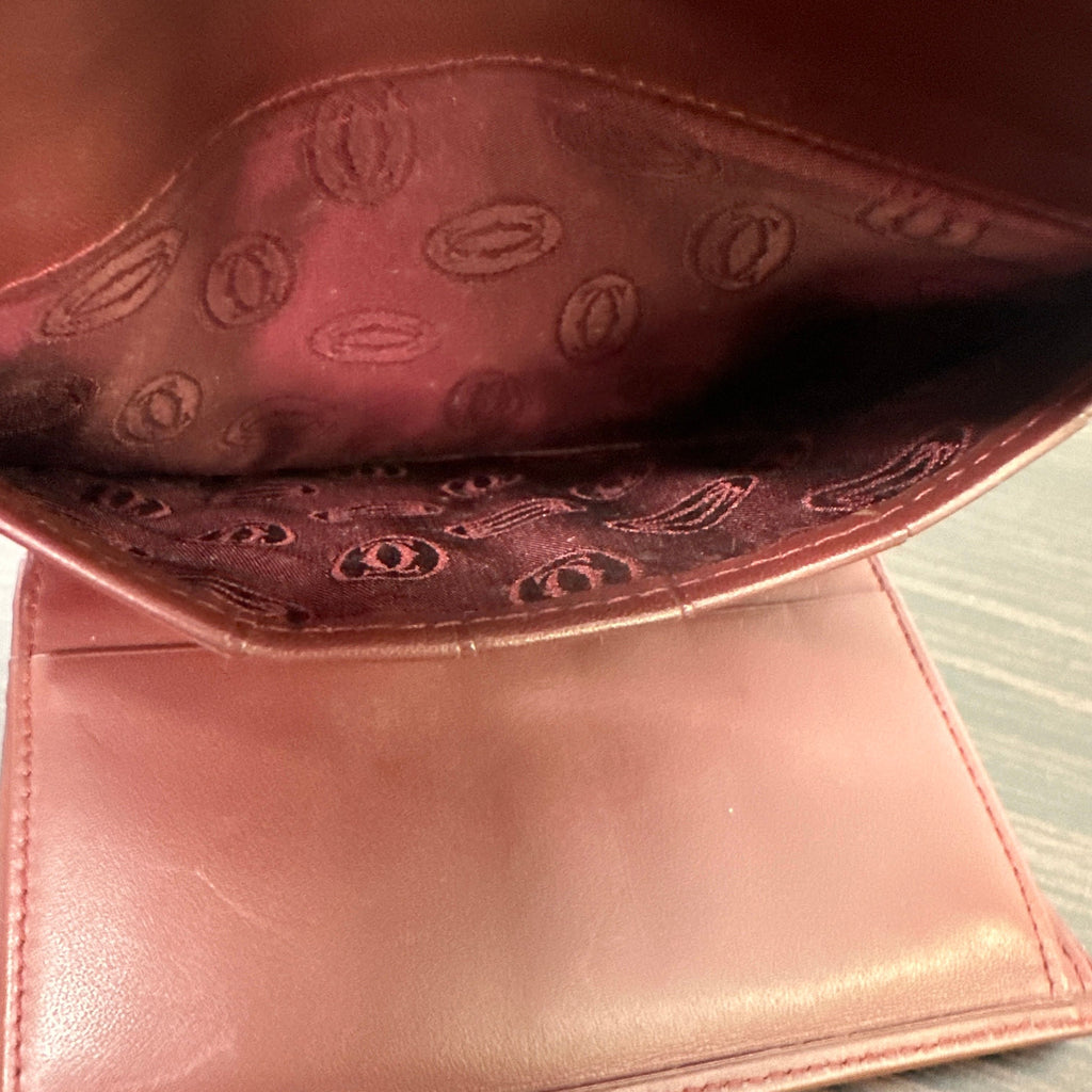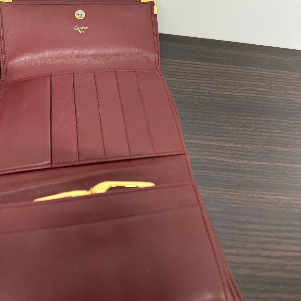 Cartier Vintage Must Line Bordeaux Tri-Fold Wallet w/ Kisslock Pouch LB120720