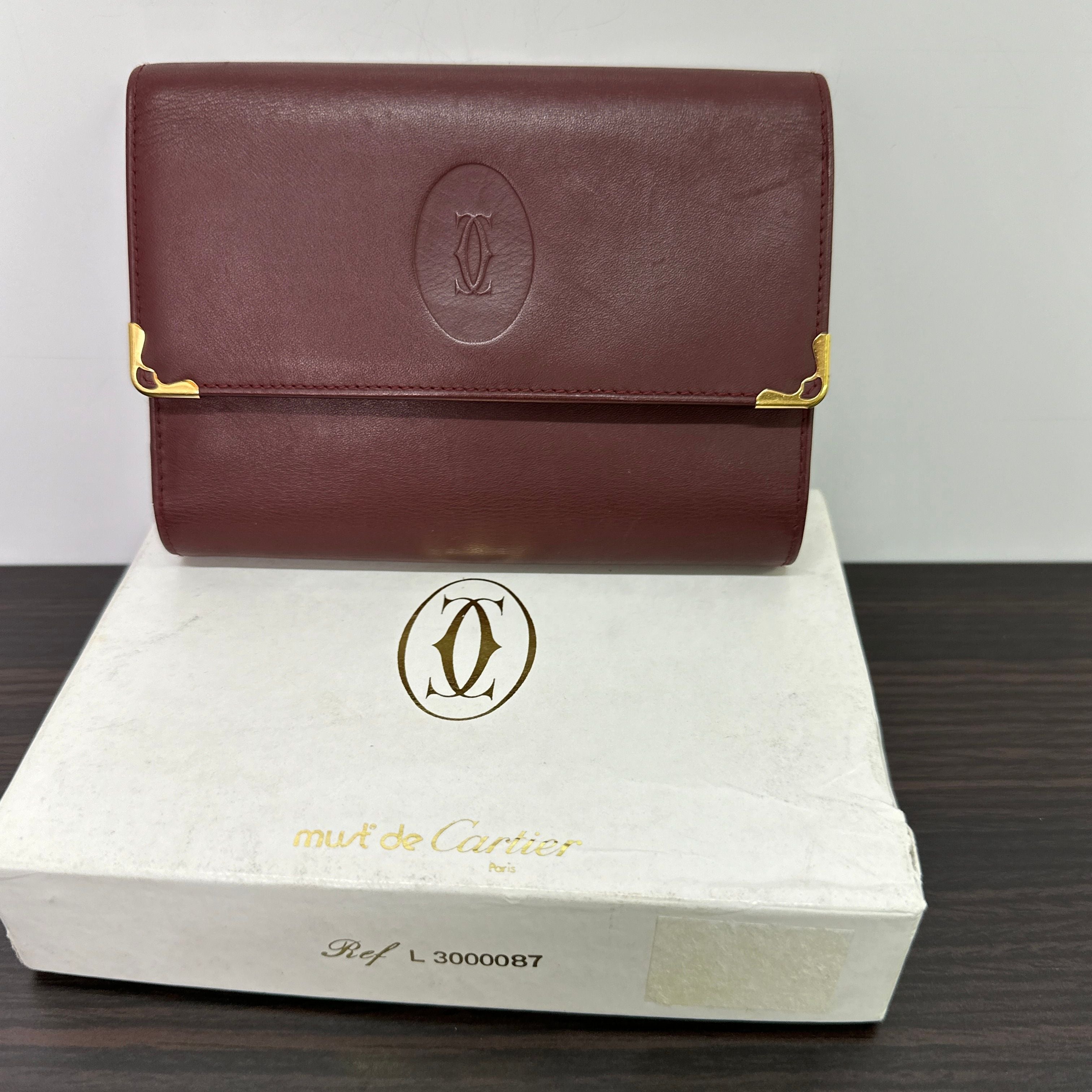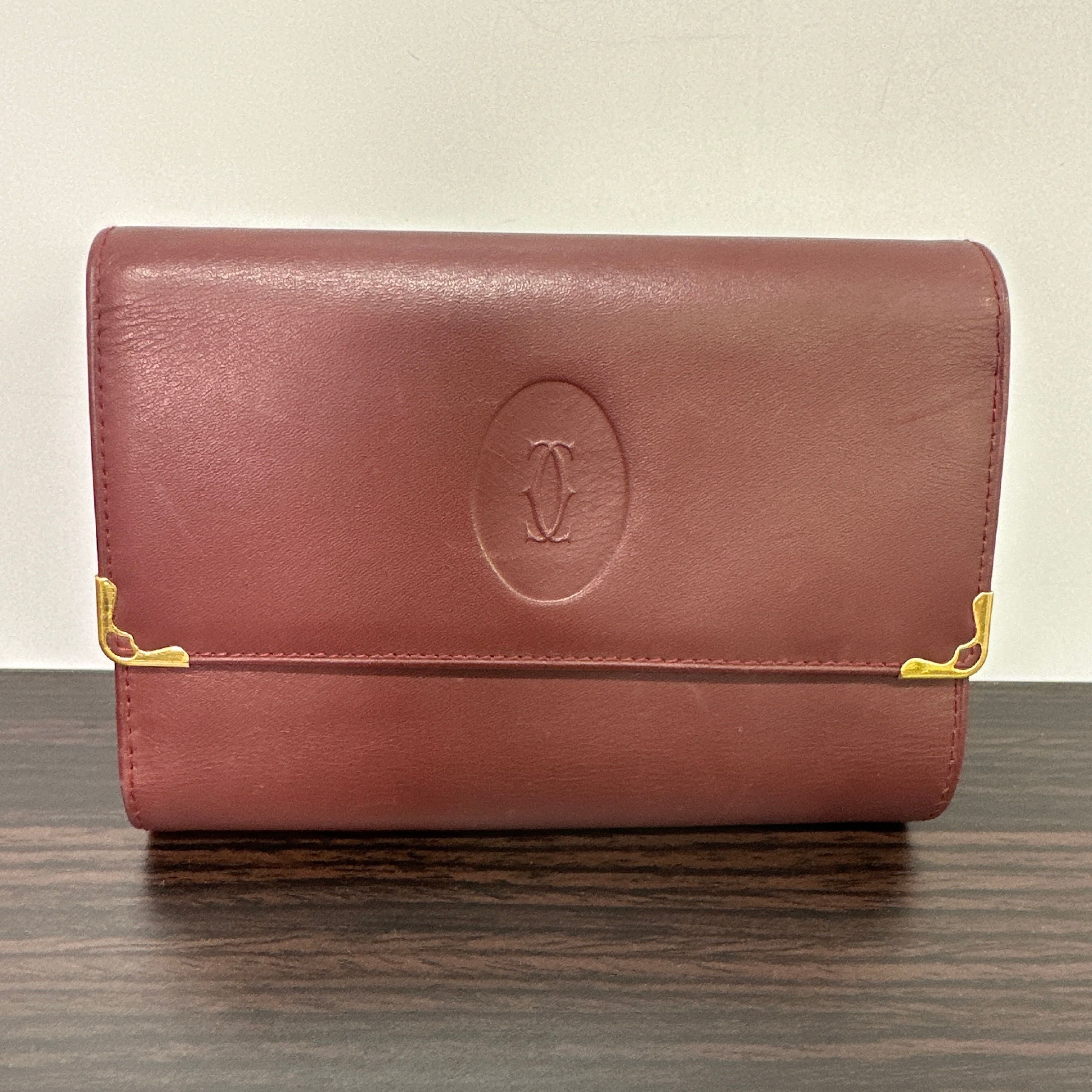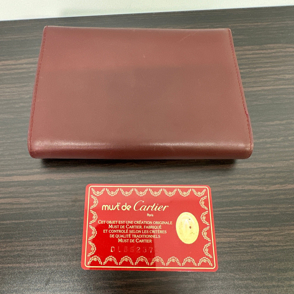 Cartier Vintage Must Line Bordeaux Tri-Fold Wallet w/ Kisslock Pouch LB120720