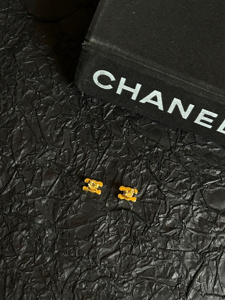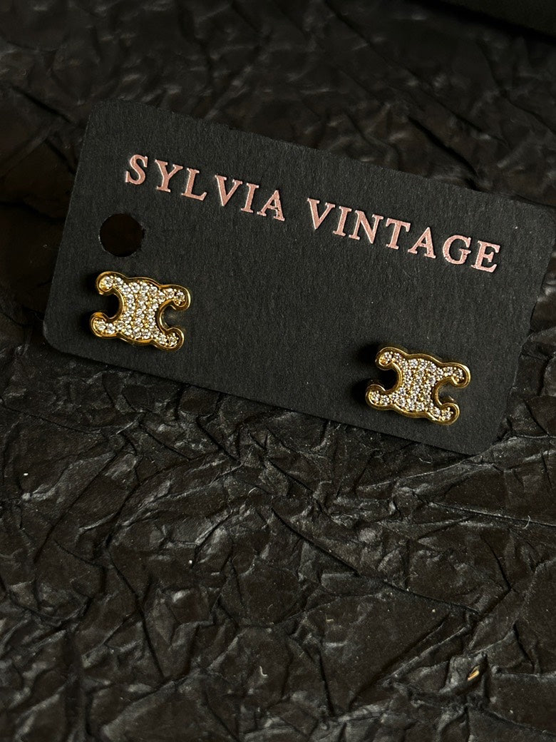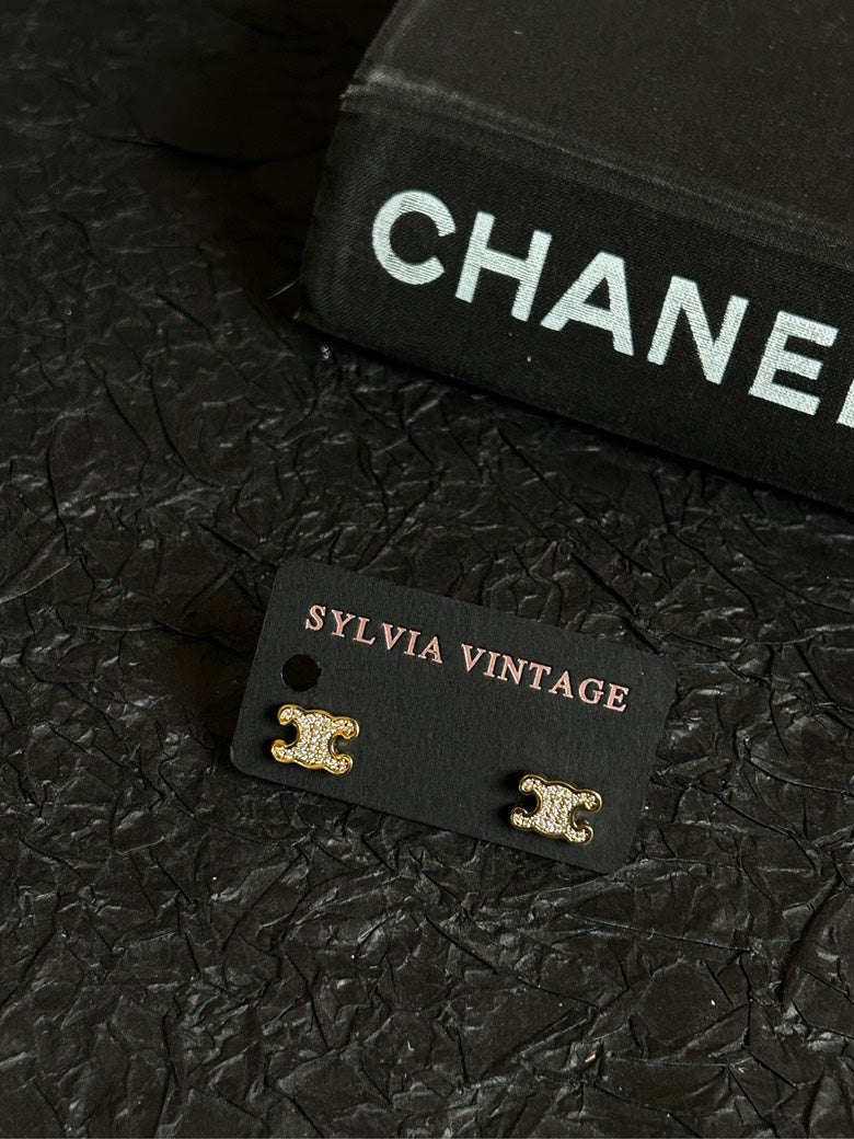Celine Gold Triomphe Full Diamond Stud Earrings 1.1cm×0.8cm