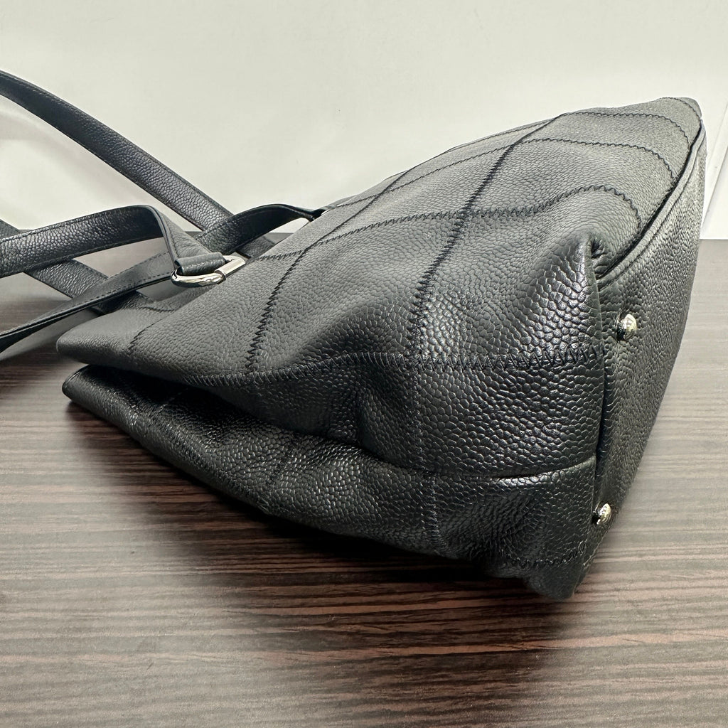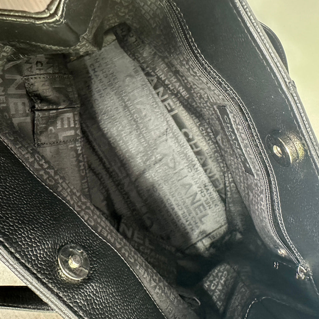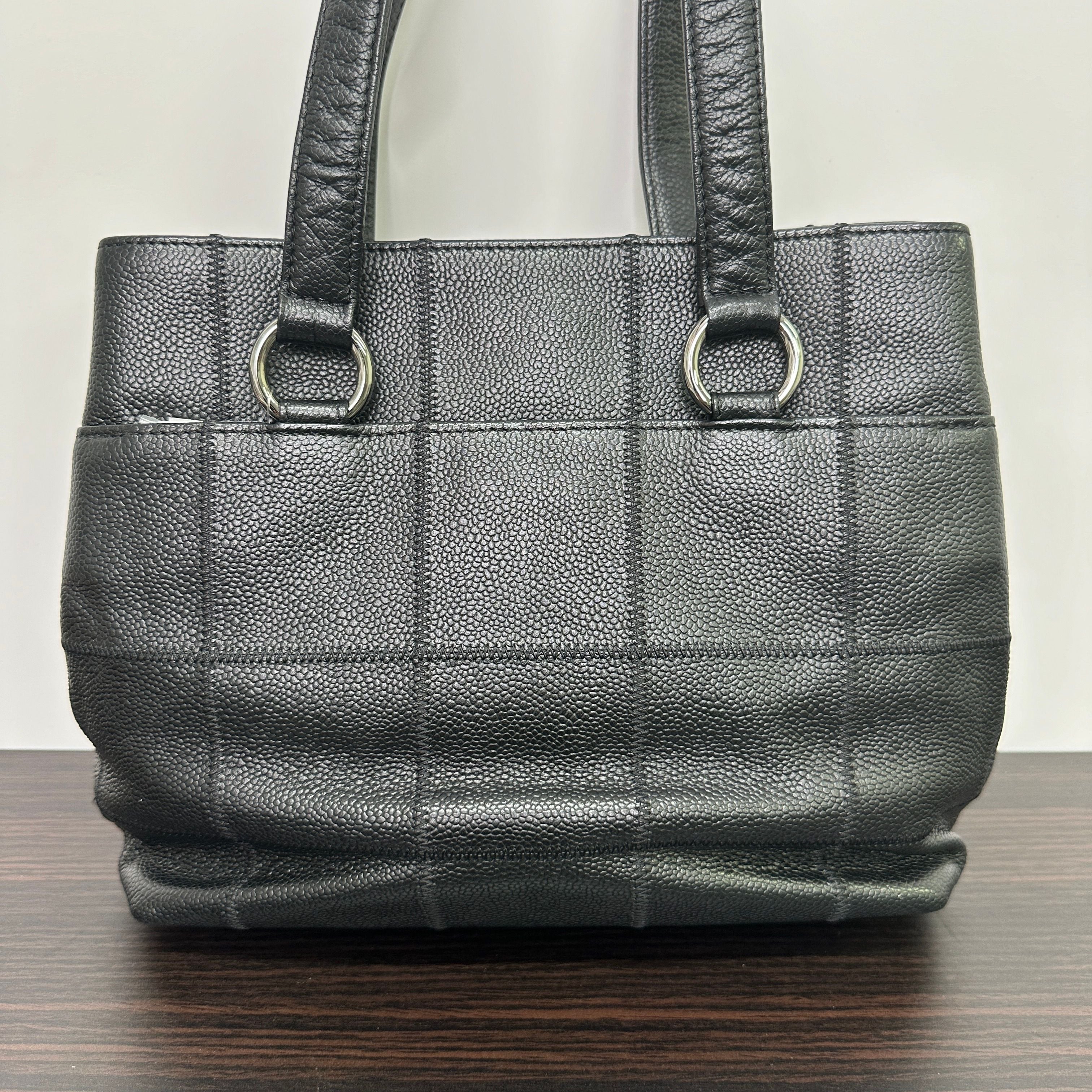 CONDITION Fair Good Very Good Great Excellent Pristine Condition Details No significant scratches on the exterior, no noticeable stains on the interior, overall in good condition. Serial Model • No Chip Authentication • Entrupy OVERVIEW Exterior Color Black Exterior Material Leather Lining Color Not specified Lining Material Not specified Handle/Strap Color Black Handle/Strap Material Leather Hardware Color - Closure Not specified Pattern Quilted Size OS Introducing the Chanel Cambon Choco Bar Shopper, a timeless tote pouch crafted from luxurious black quilted leather. This elegant piece from Chanel's renowned Cambon Choco Bar line features sleek leather handles and a sophisticated design, perfect for the modern woman. As a pre-owned item, it has been carefully authenticated by Entrupy and rated 8.5/10, reflecting its great condition with no significant exterior scratches or interior stains. Combining practicality with high fashion, this shopper is an exquisite addition to any wardrobe, embodying Chanel's signature style and enduring quality.