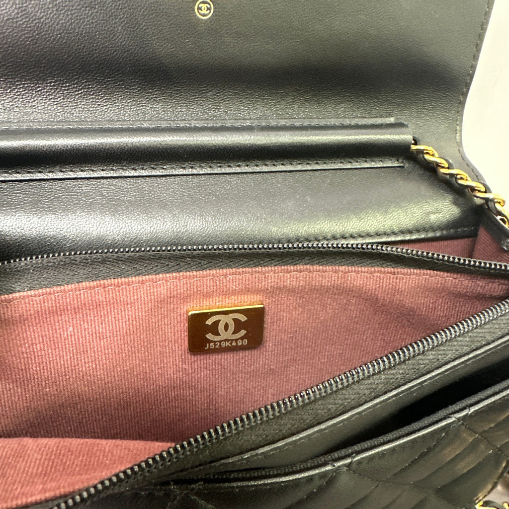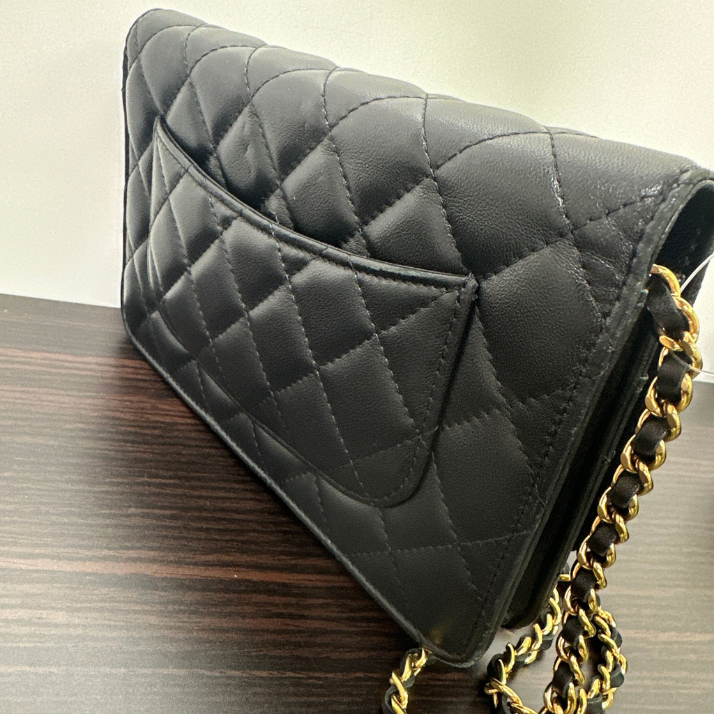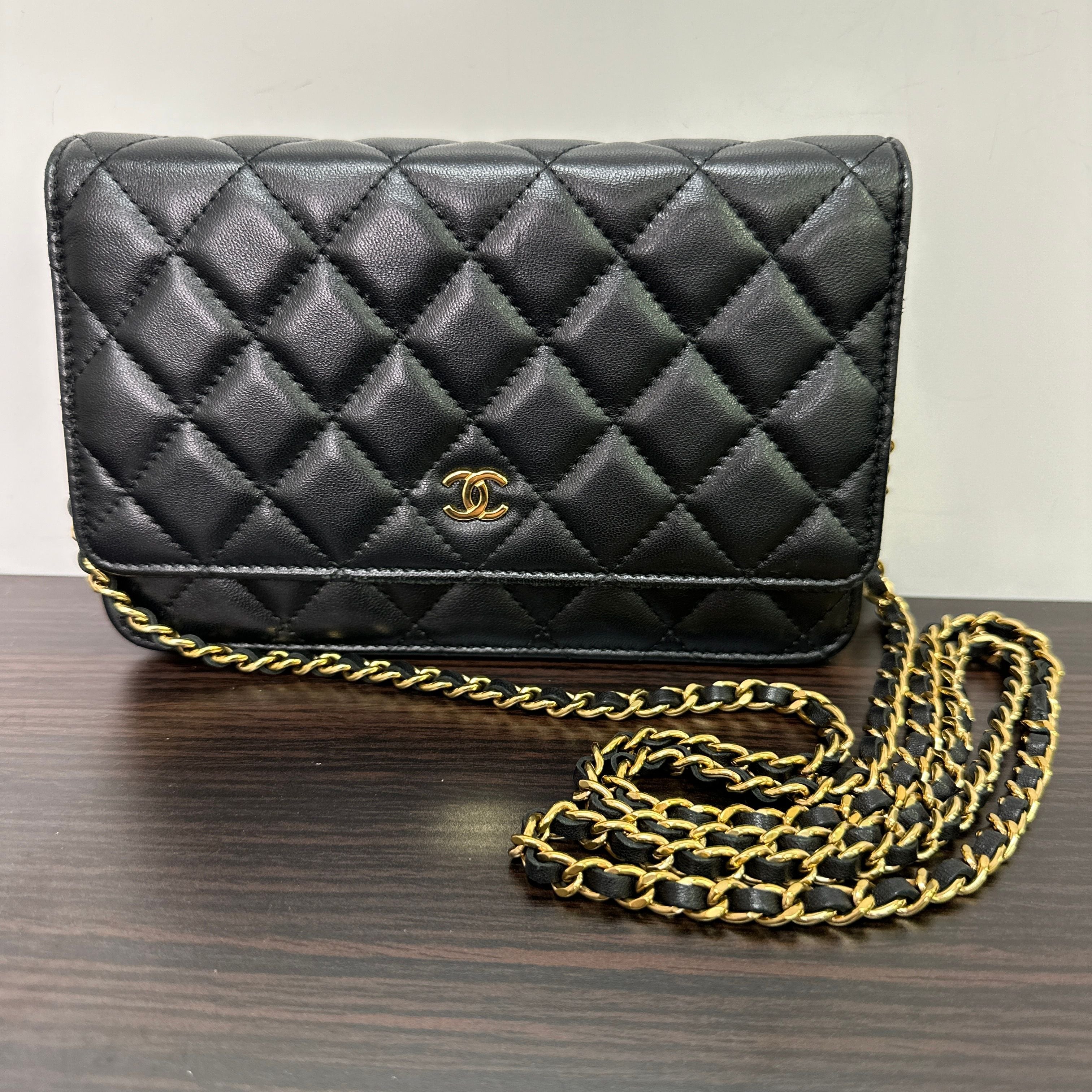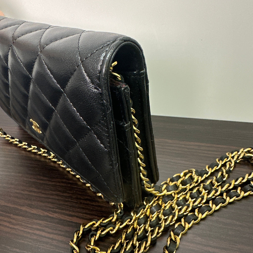 CHANEL | Bags | Chanel Lambskin Quilted Wallet On Chain Woc Black Gold Hardware LB121117