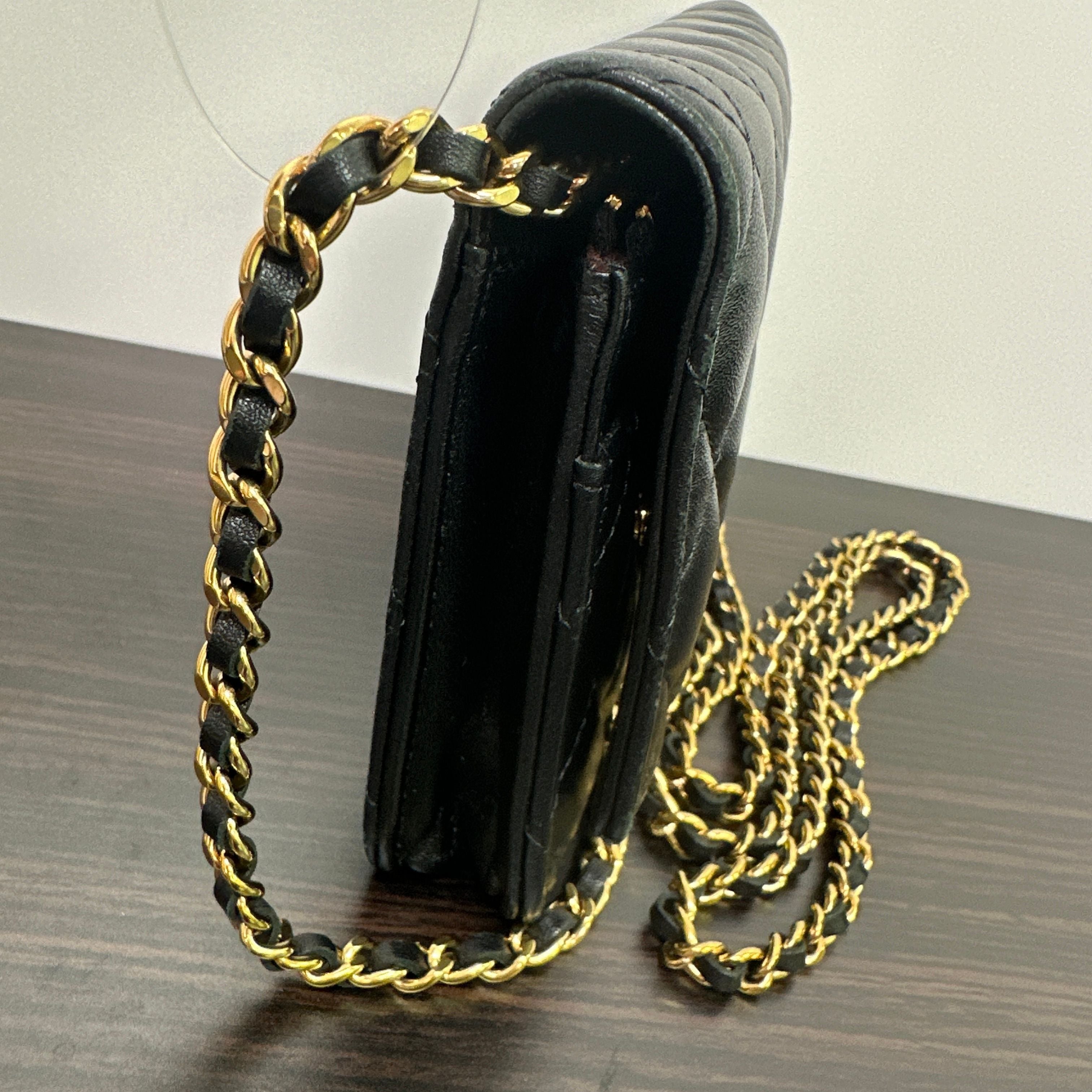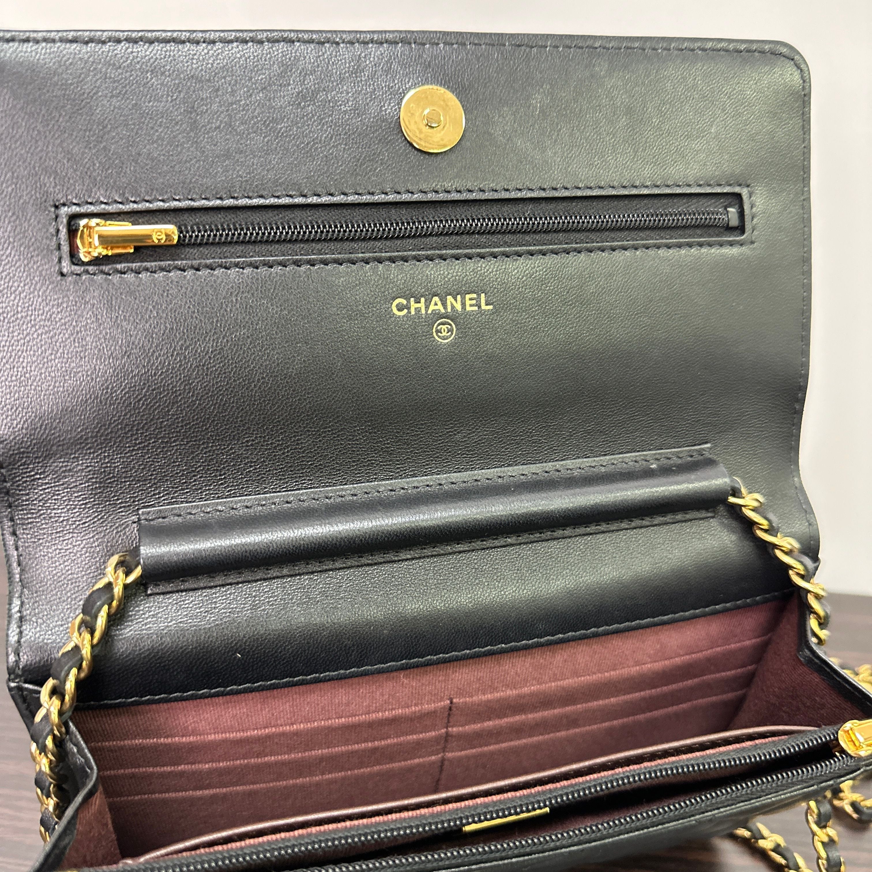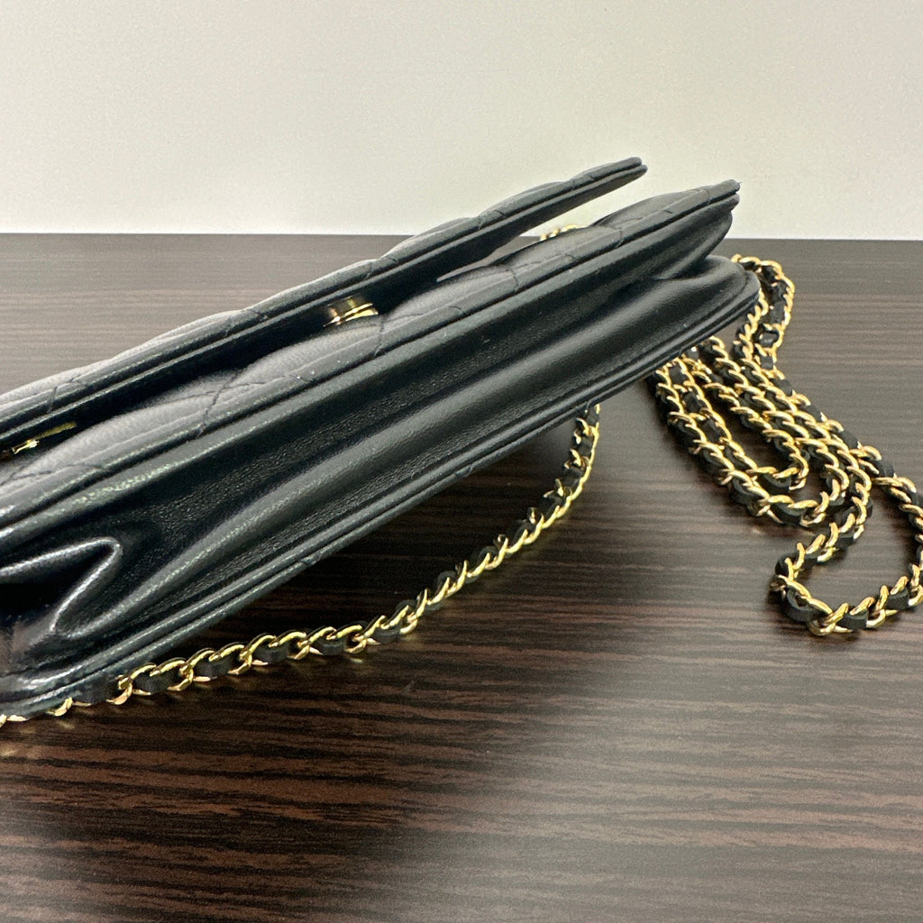 CHANEL | Bags | Chanel Lambskin Quilted Wallet On Chain Woc Black Gold Hardware LB121117