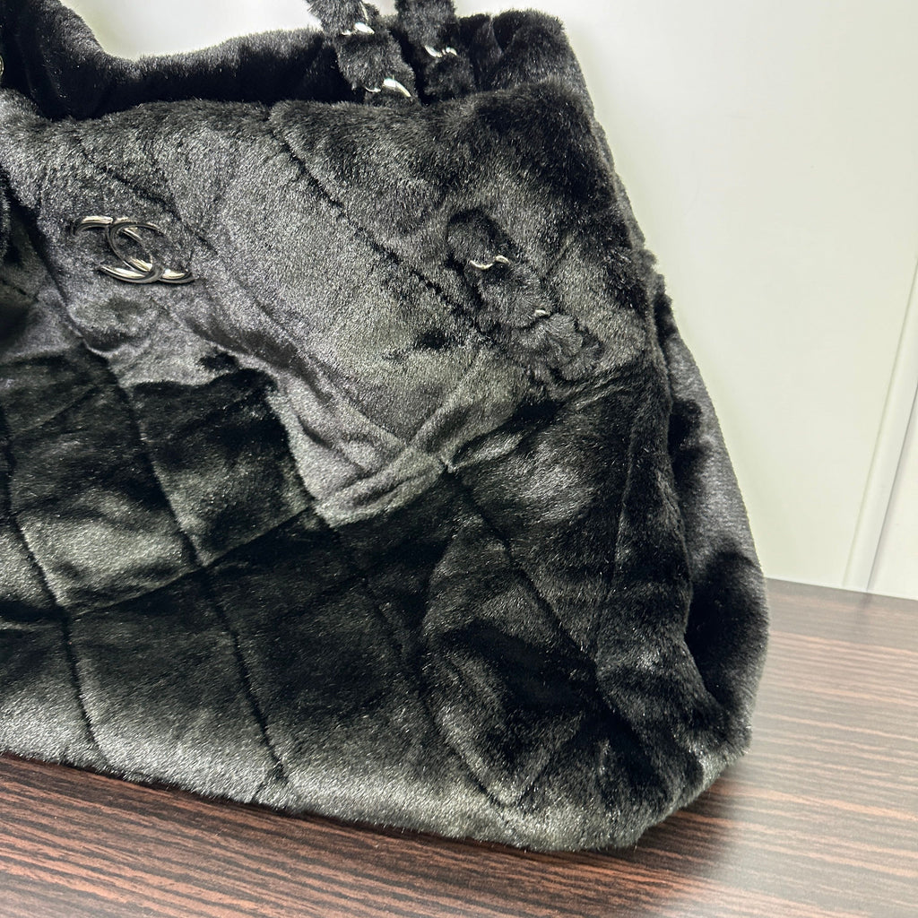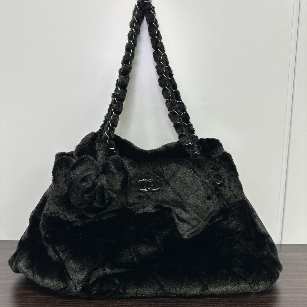 Chanel Fantasy Faux Fur Camellia Tote - Black LB122454