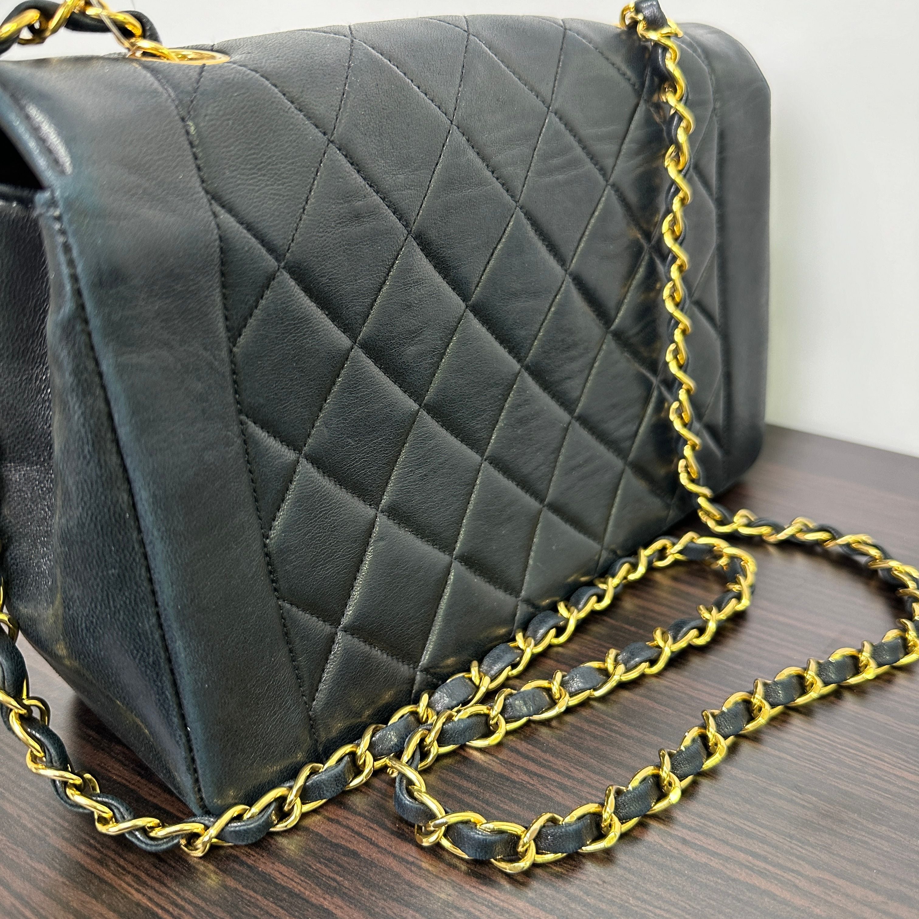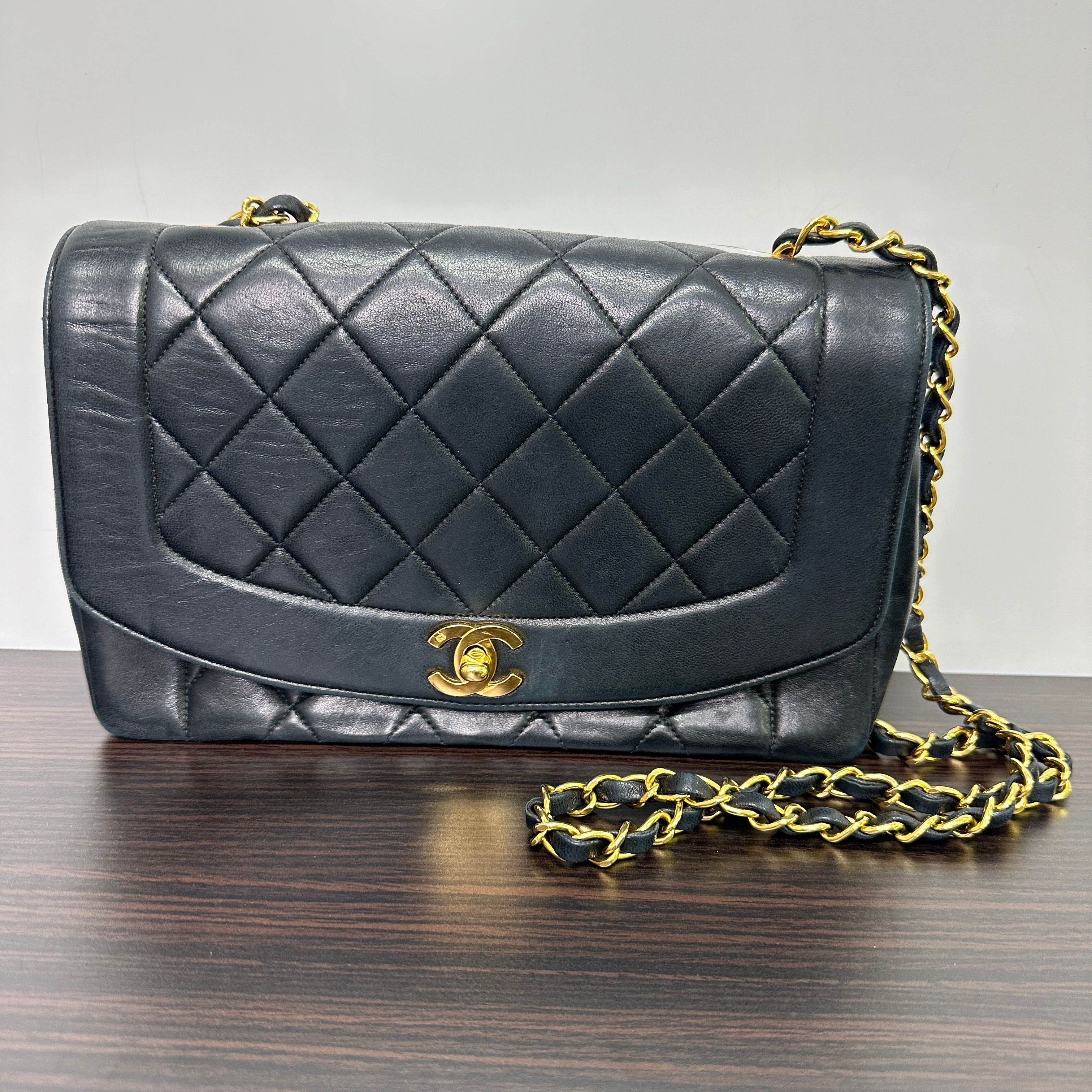 CHANEL Matelasse Quilted Diana Lambskin Chain Shoulder Bag LB125192