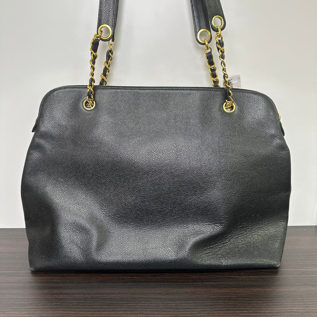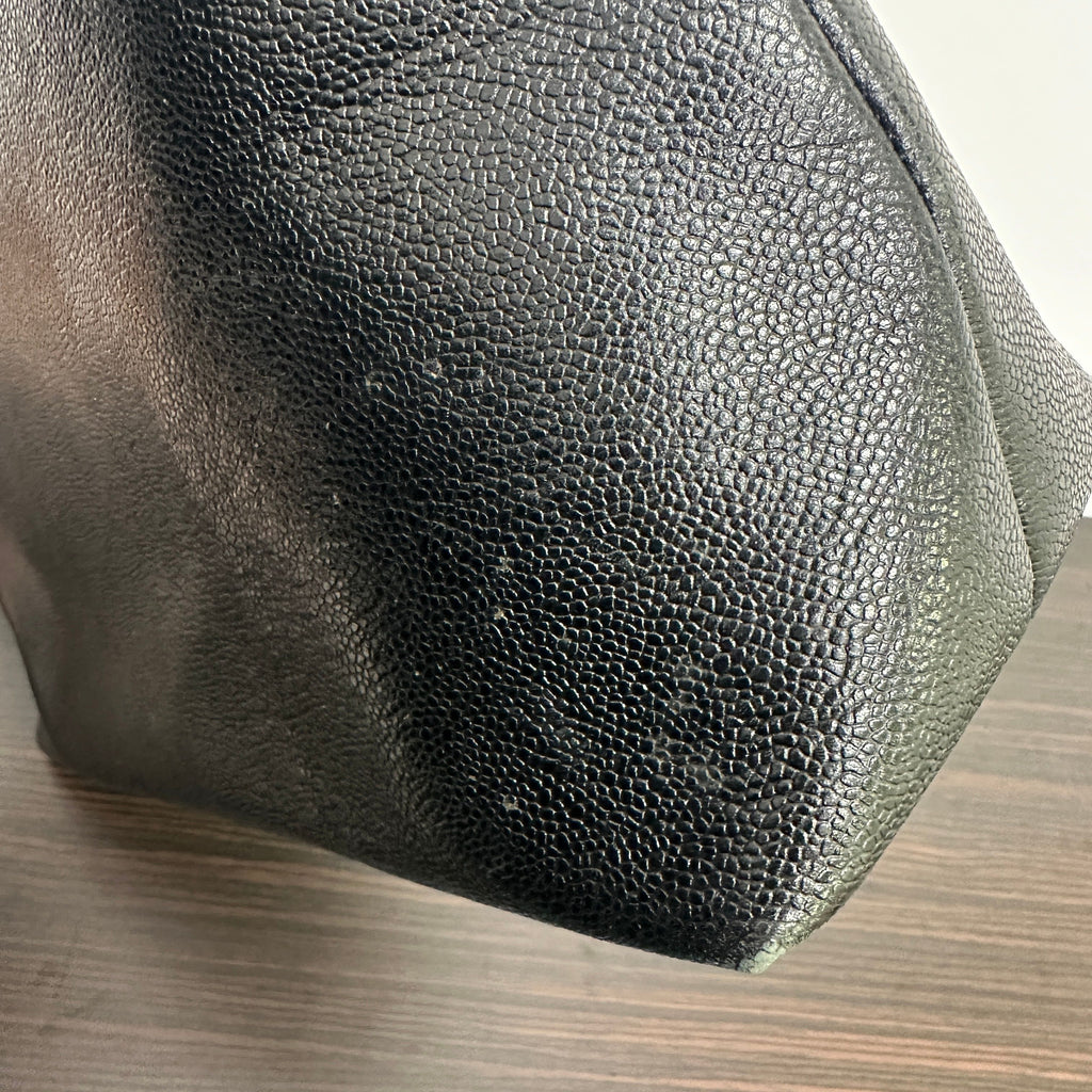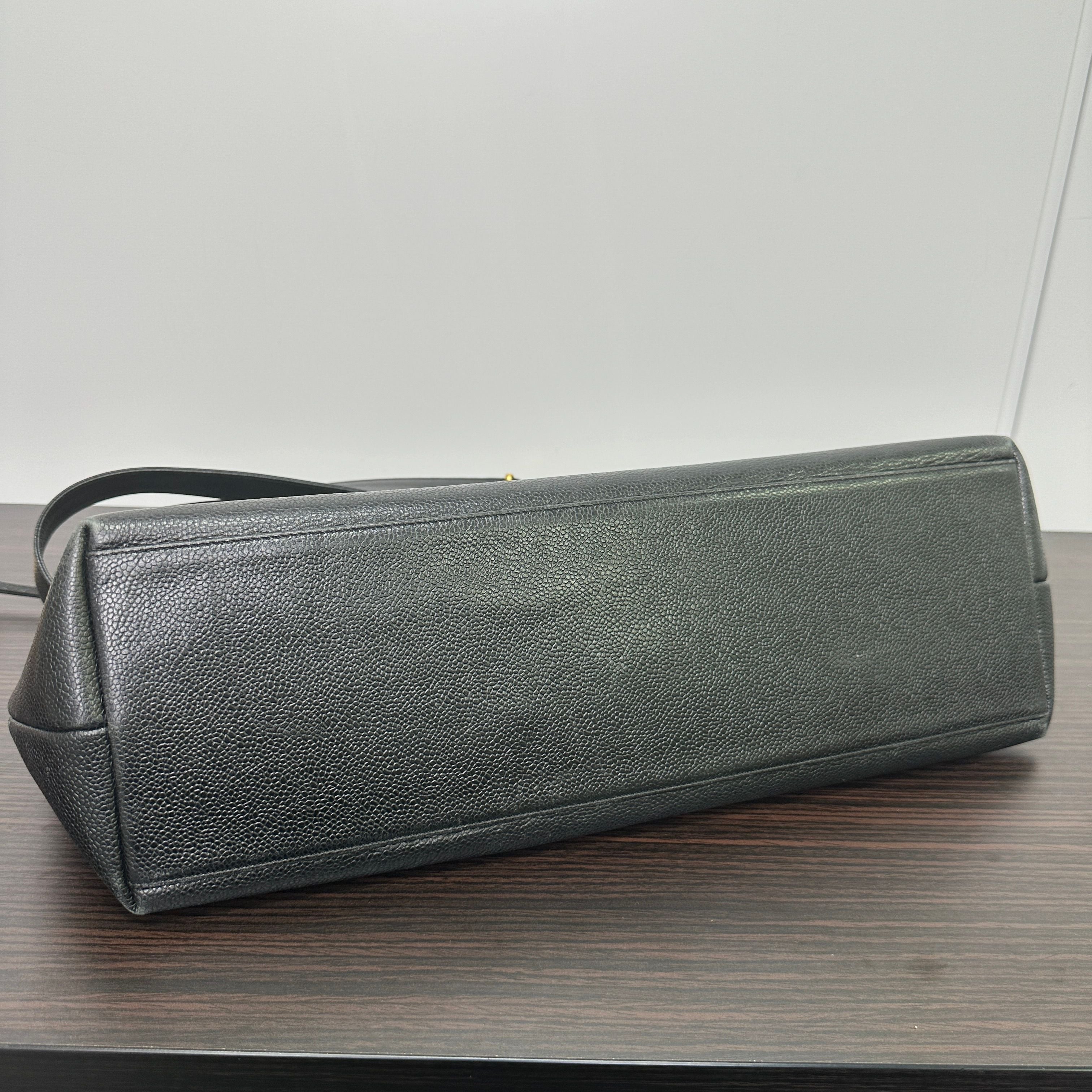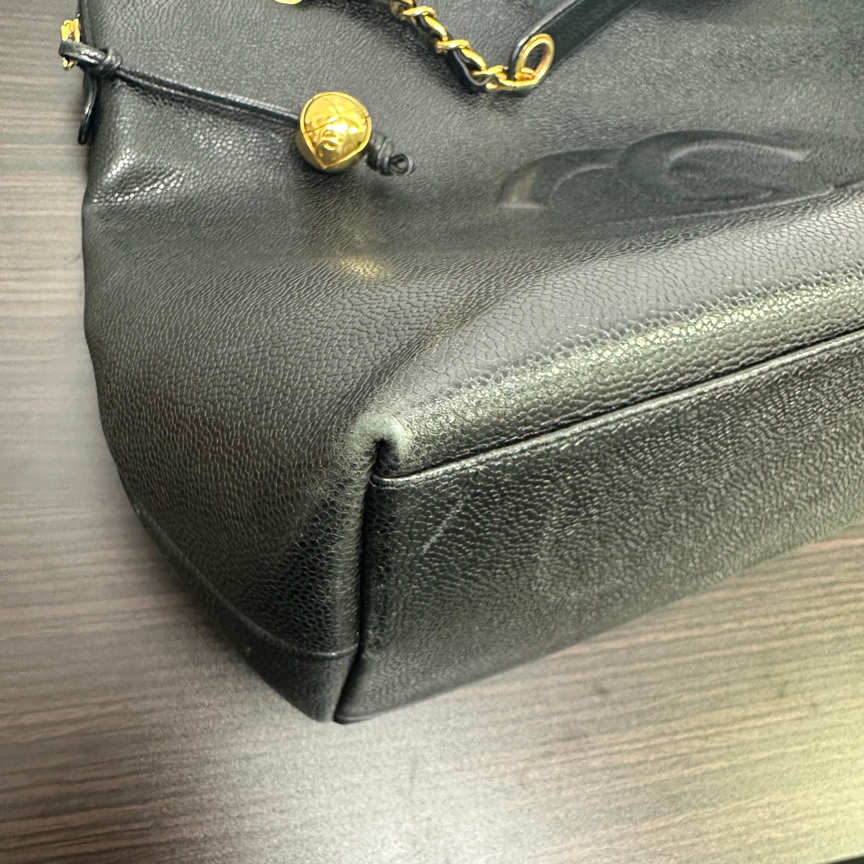 CONDITION Fair Good Very Good Great Excellent Pristine Condition Details No significant scratches on the exterior, no noticeable stains on the interior, overall in good condition. Serial Model • No Chip Authentication • Entrupy OVERVIEW Exterior Color Black Exterior Material Caviar leather Lining Color Black Lining Material Leather Handle/Strap Color Black and gold-tone Handle/Strap Material Leather and chain Hardware Color Gold-tone Closure Flap with CC turn-lock Pattern Quilted Size 6 x 10 x 2.5 inches Presenting the CHANEL Pre-Owned 1995 CC Caviar-Leather Shoulder Bag in timeless black, a distinguished piece from the iconic Chanel Classic line. Crafted from durable caviar leather with a quilted pattern, this round shoulder bag measures 6 x 10 x 2.5 inches, featuring a black leather and gold-tone chain strap and a flap closure with the signature CC turn-lock. The interior is lined with smooth black leather, complementing the elegant gold-tone hardware. This pre-owned bag is in great condition (8.5/10), with no significant exterior scratches or interior stains, authenticated by Entrupy, making it a refined addition to any collection.