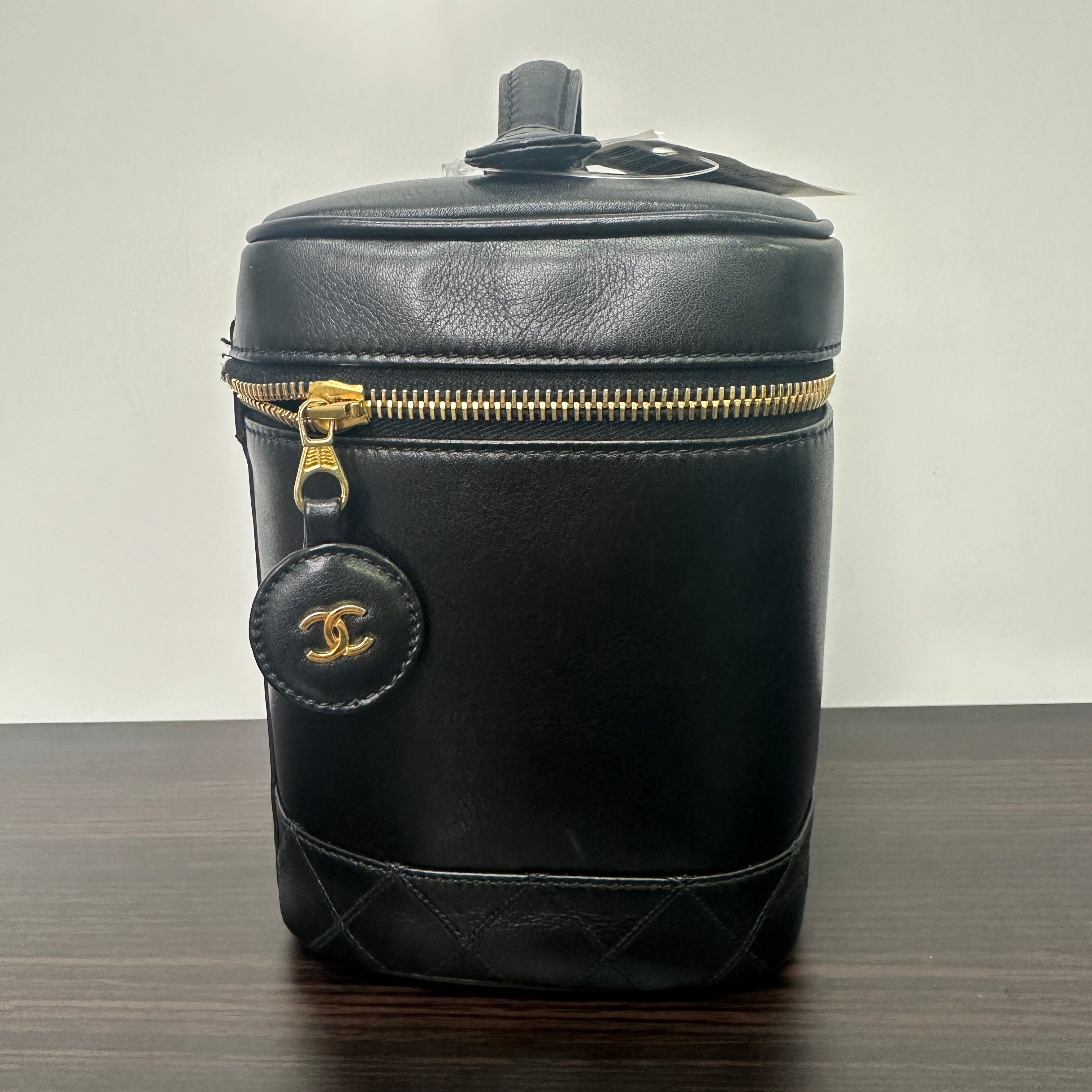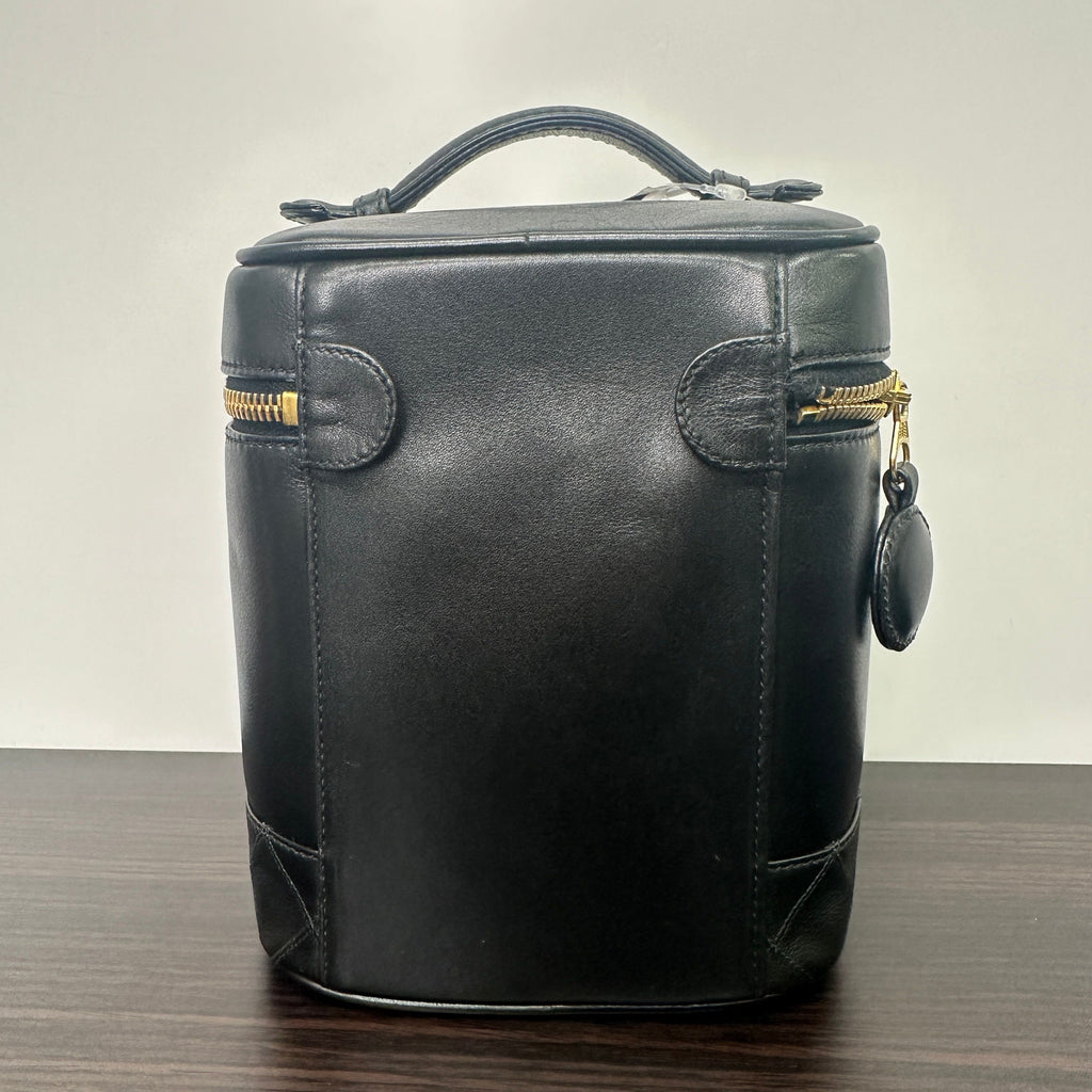CHANEL Vanity Pouch Leather Black Gold CC LB121213