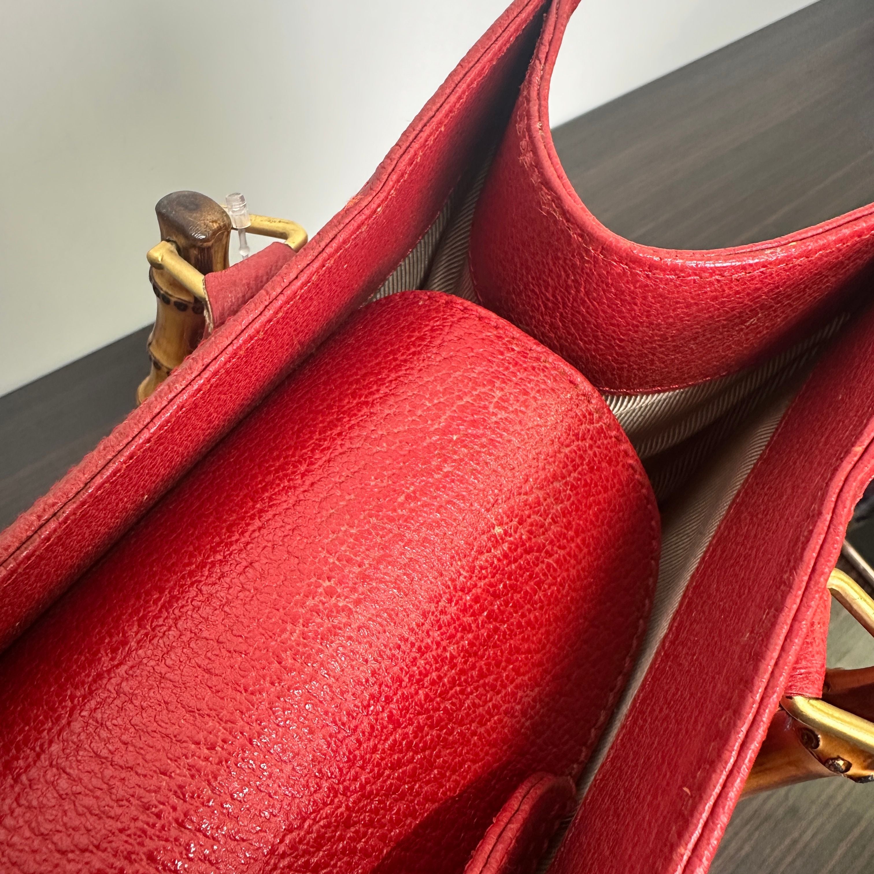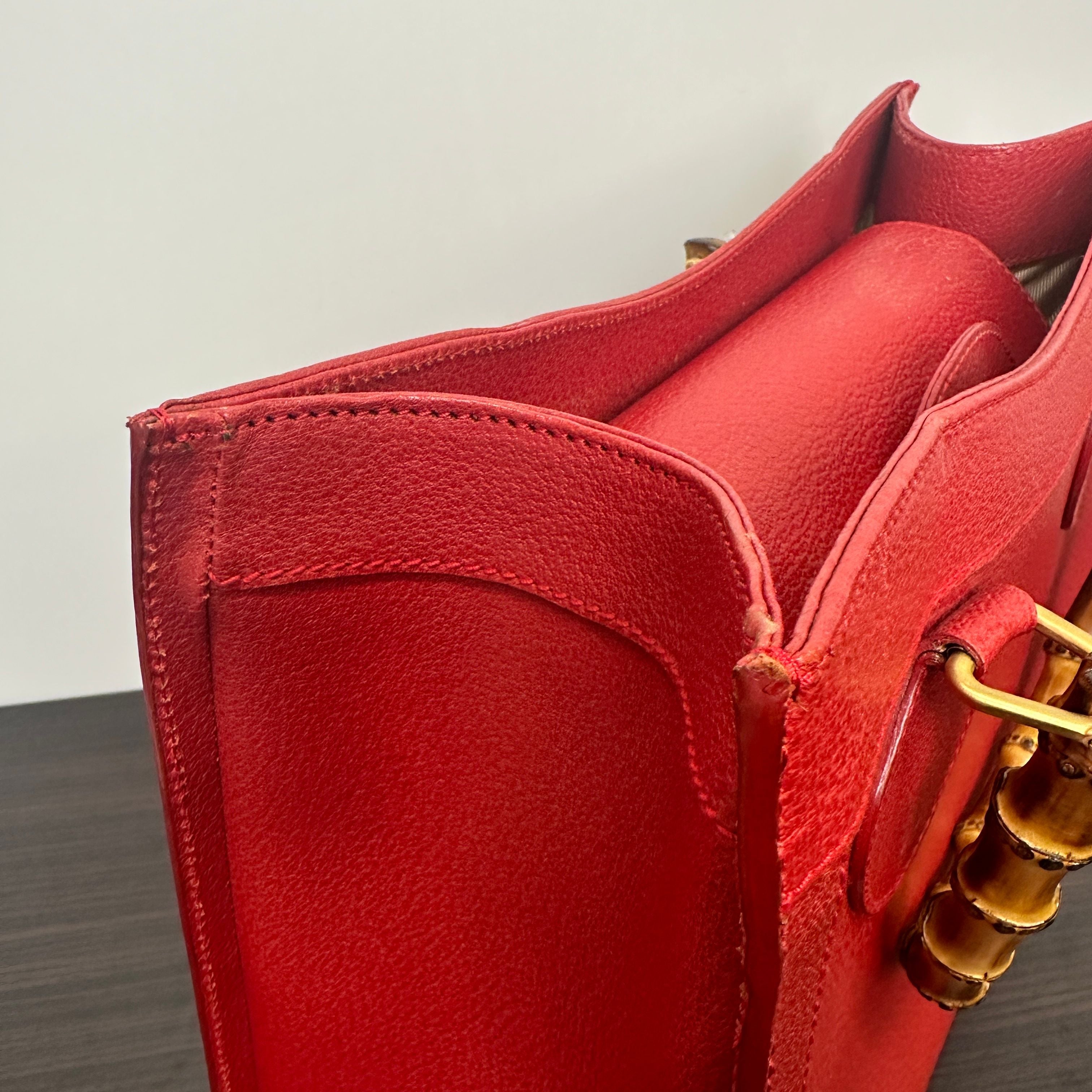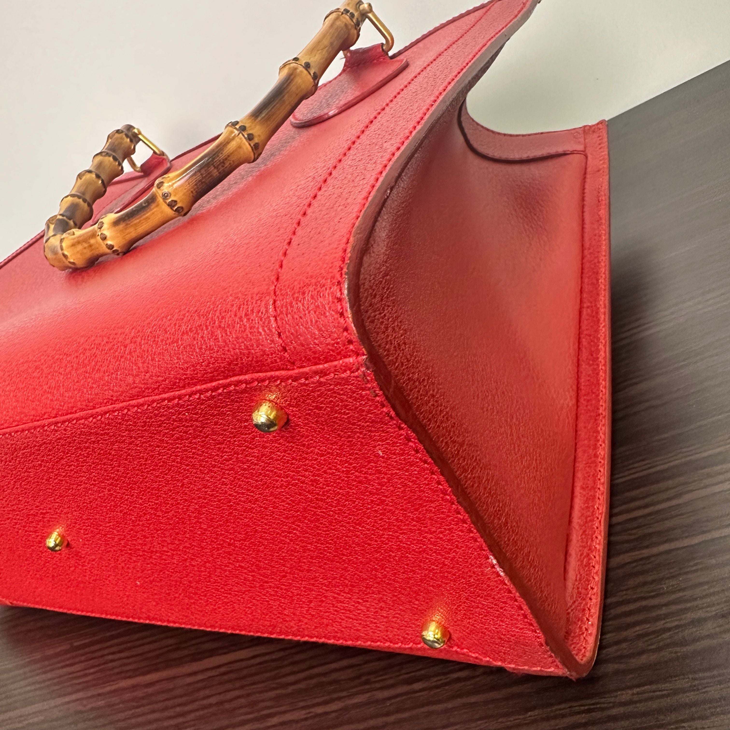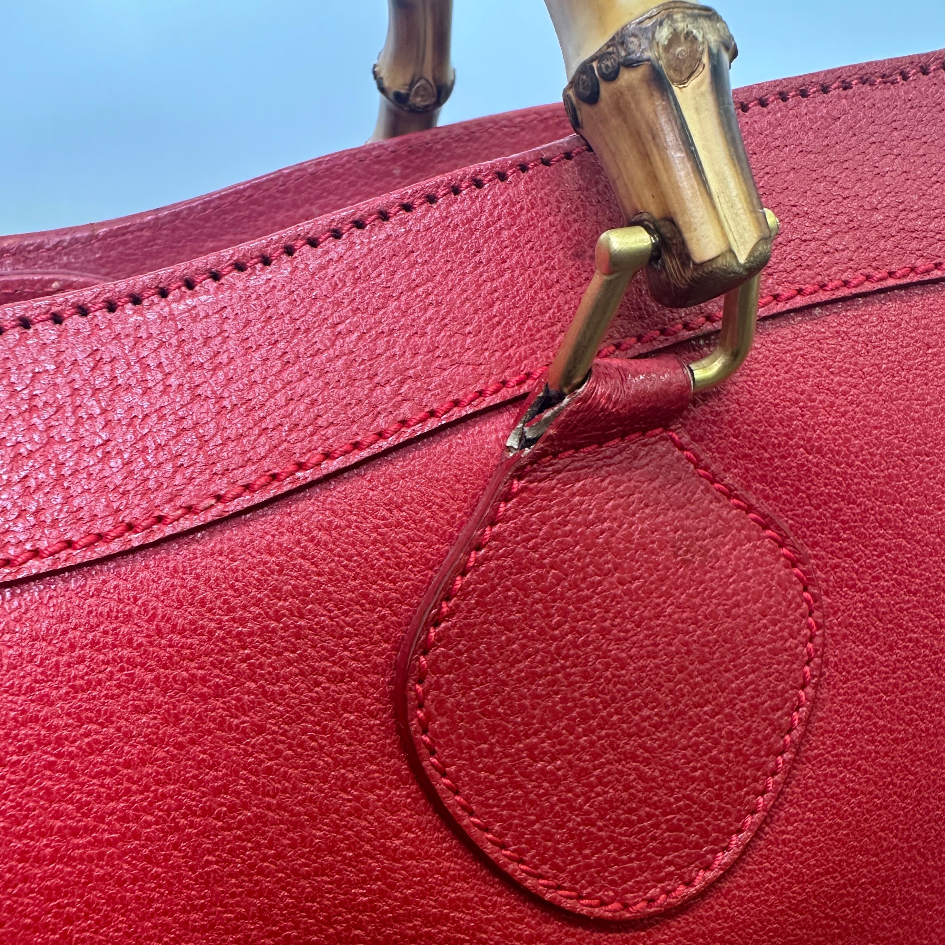 GUCCI Bamboo Leather Red Handbag Shoulder Bag Classic Purse LB125948