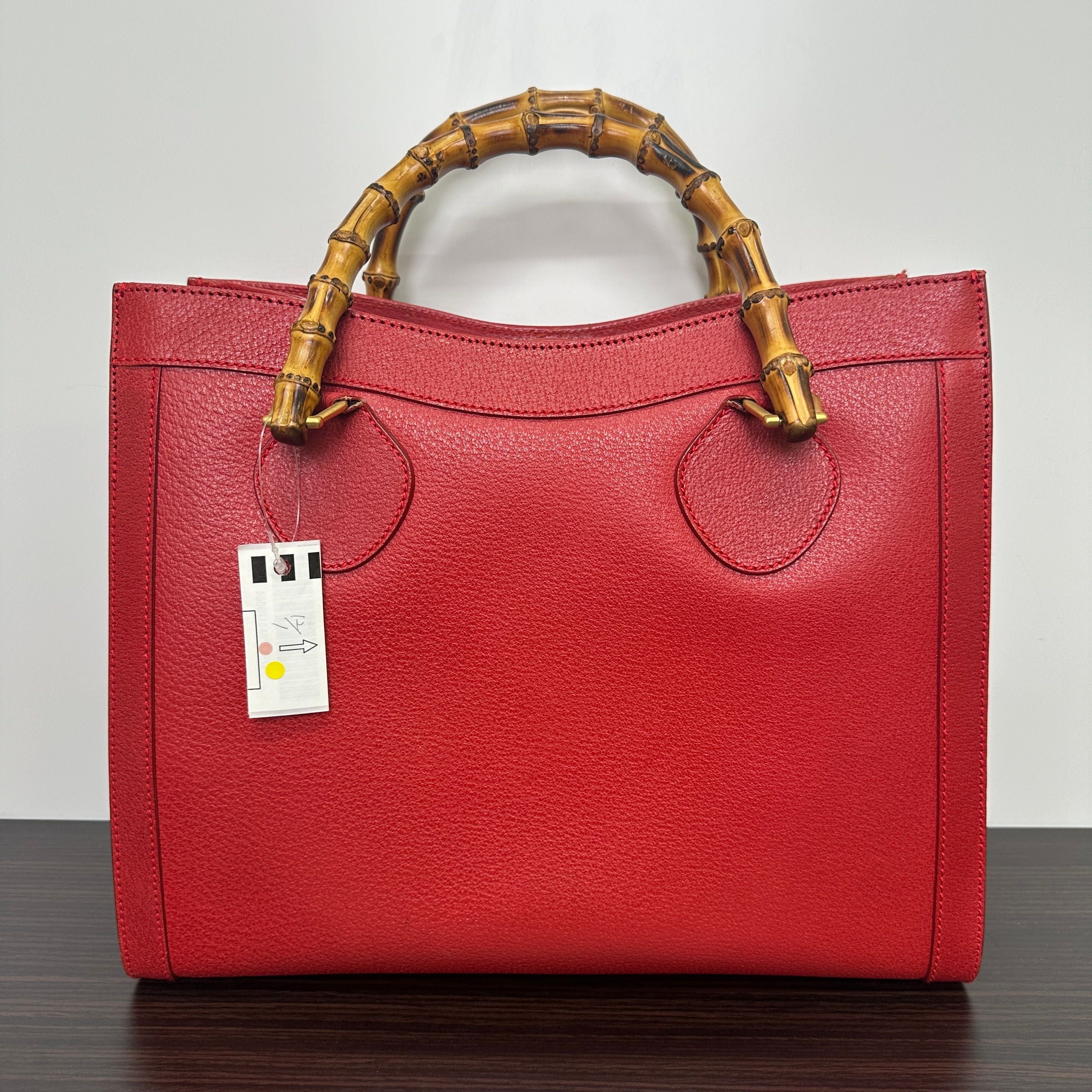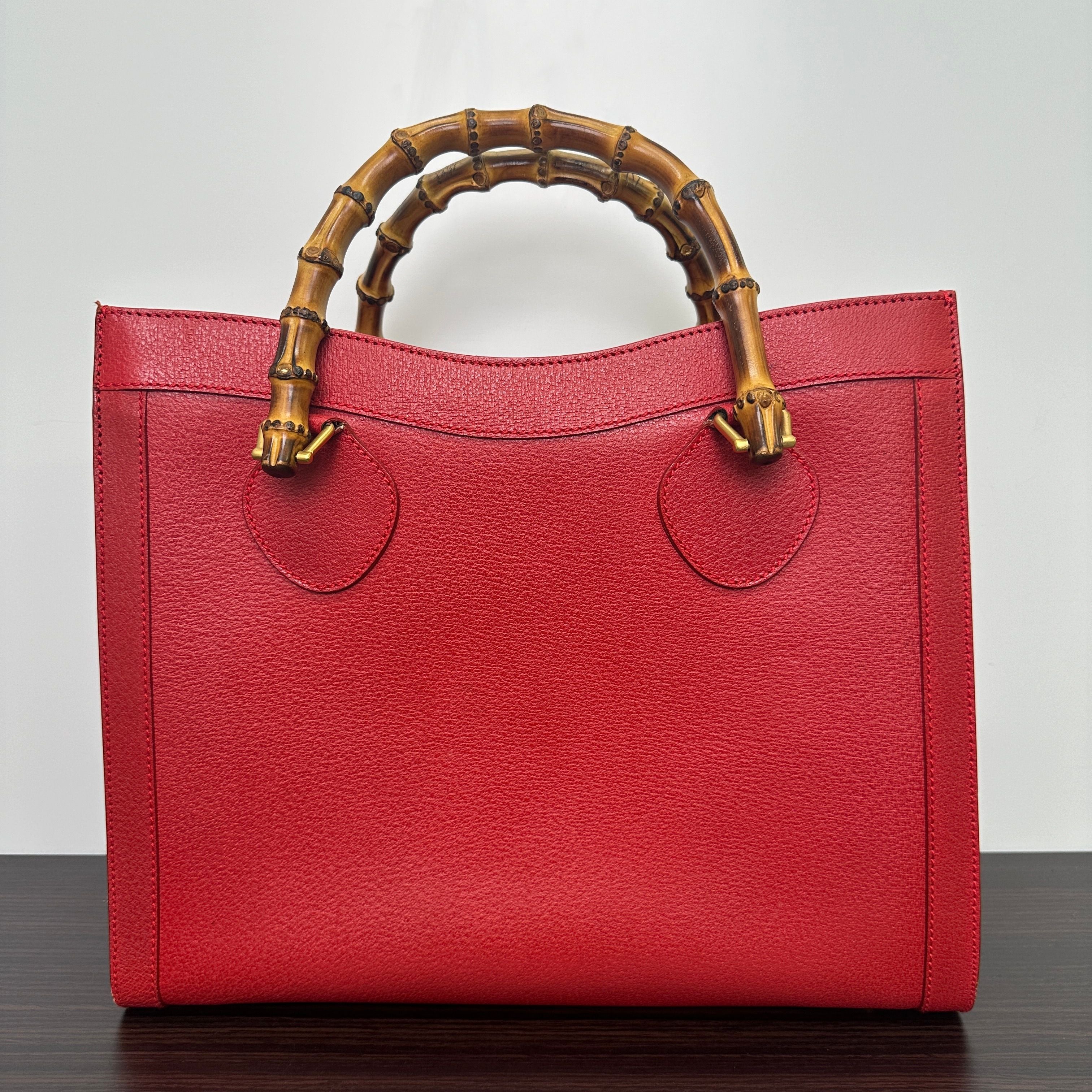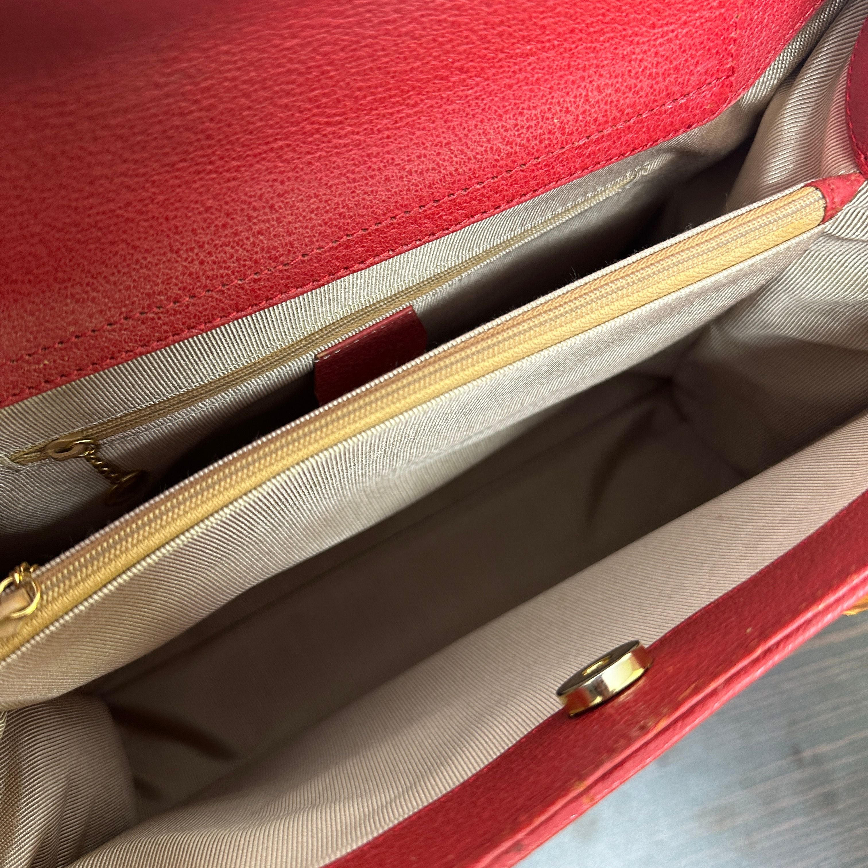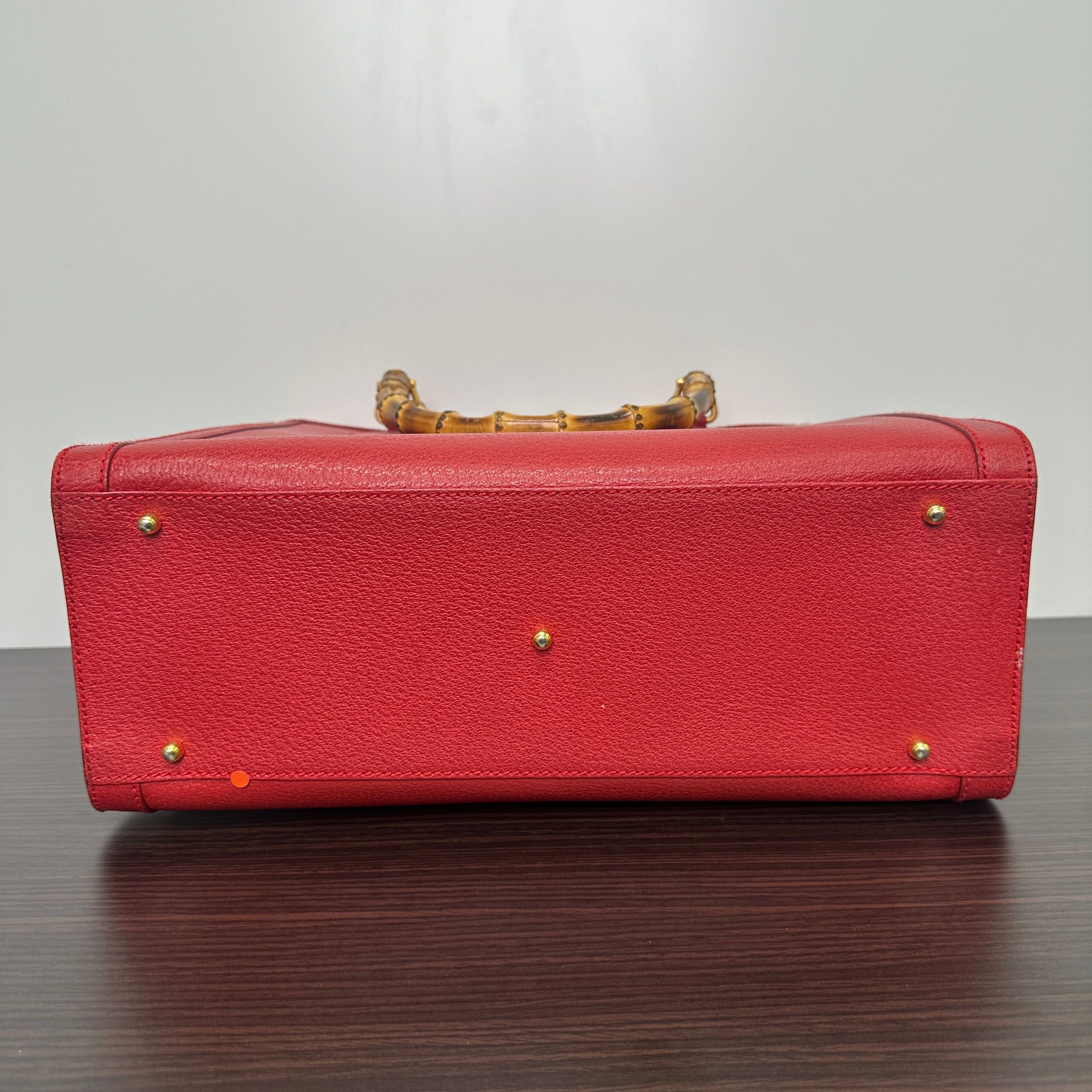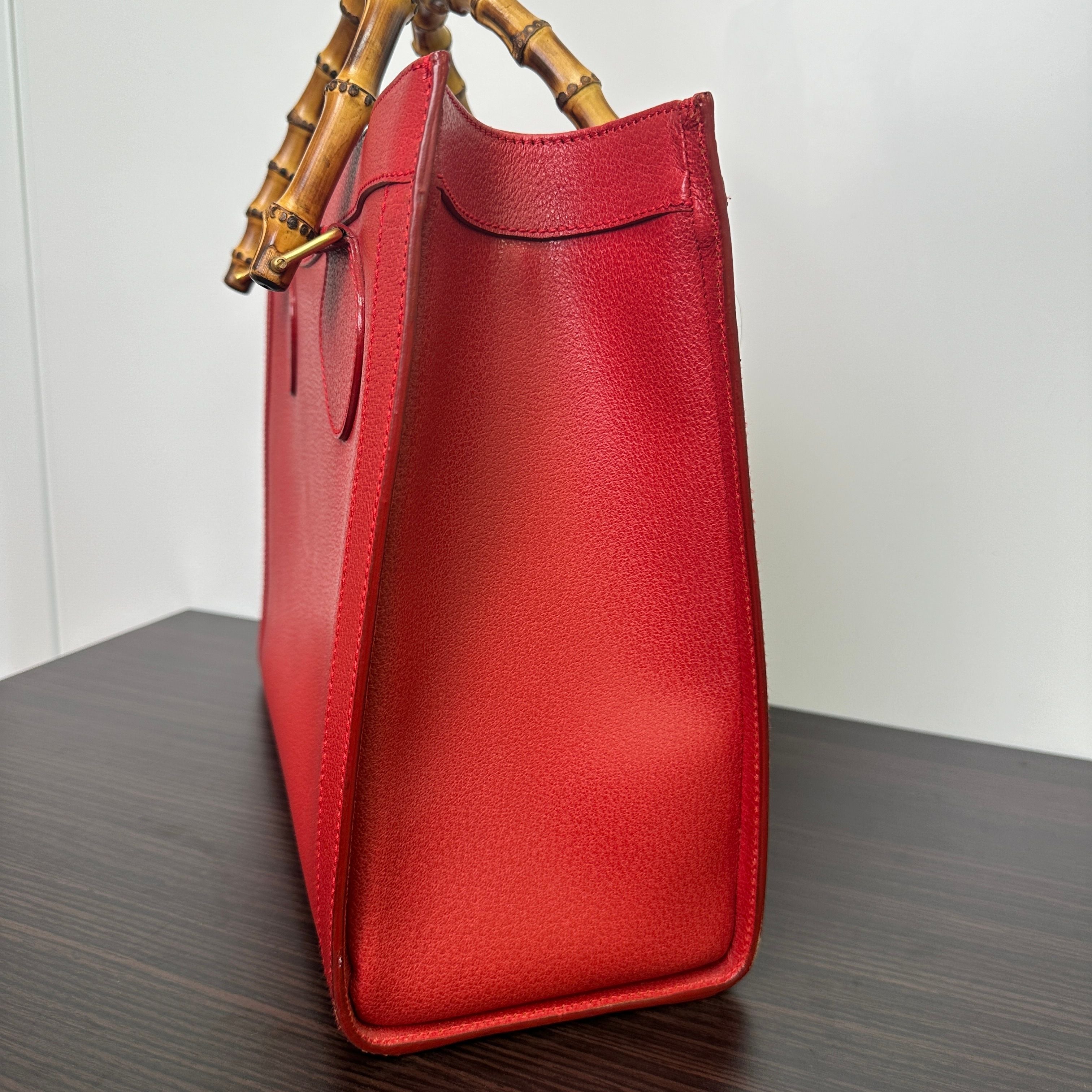 GUCCI Bamboo Leather Red Handbag Shoulder Bag Classic Purse LB125948