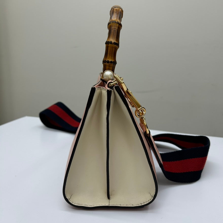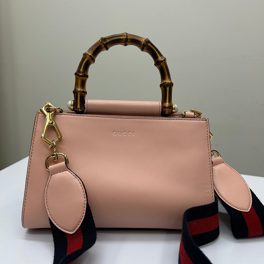 Gucci Bamboo Top Handle Leather Shoulder Bag with Web Strap gu6464hh
