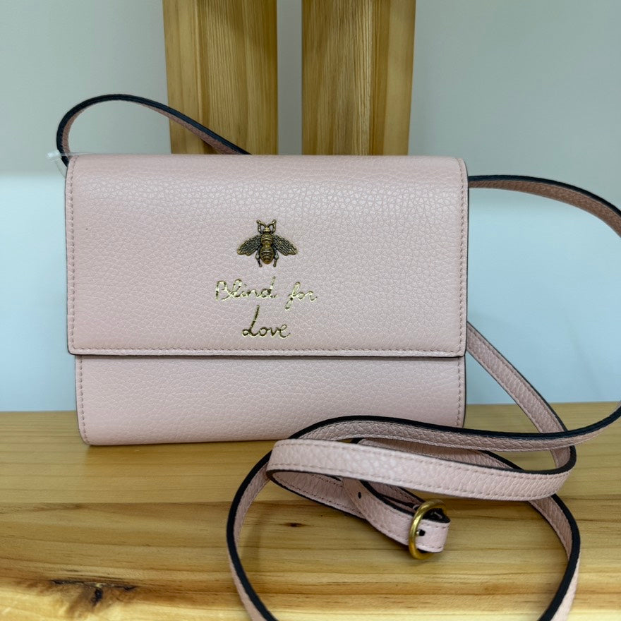 Gucci Bee “Blind For Love” Leather Crossbody Bag Pink gu4523gz