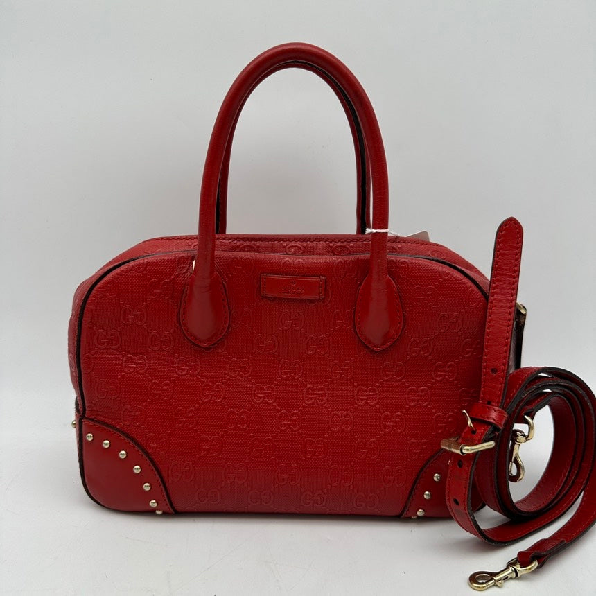 Gucci Guccissima Leather Boston Bag Red with Stud Detail 10210621