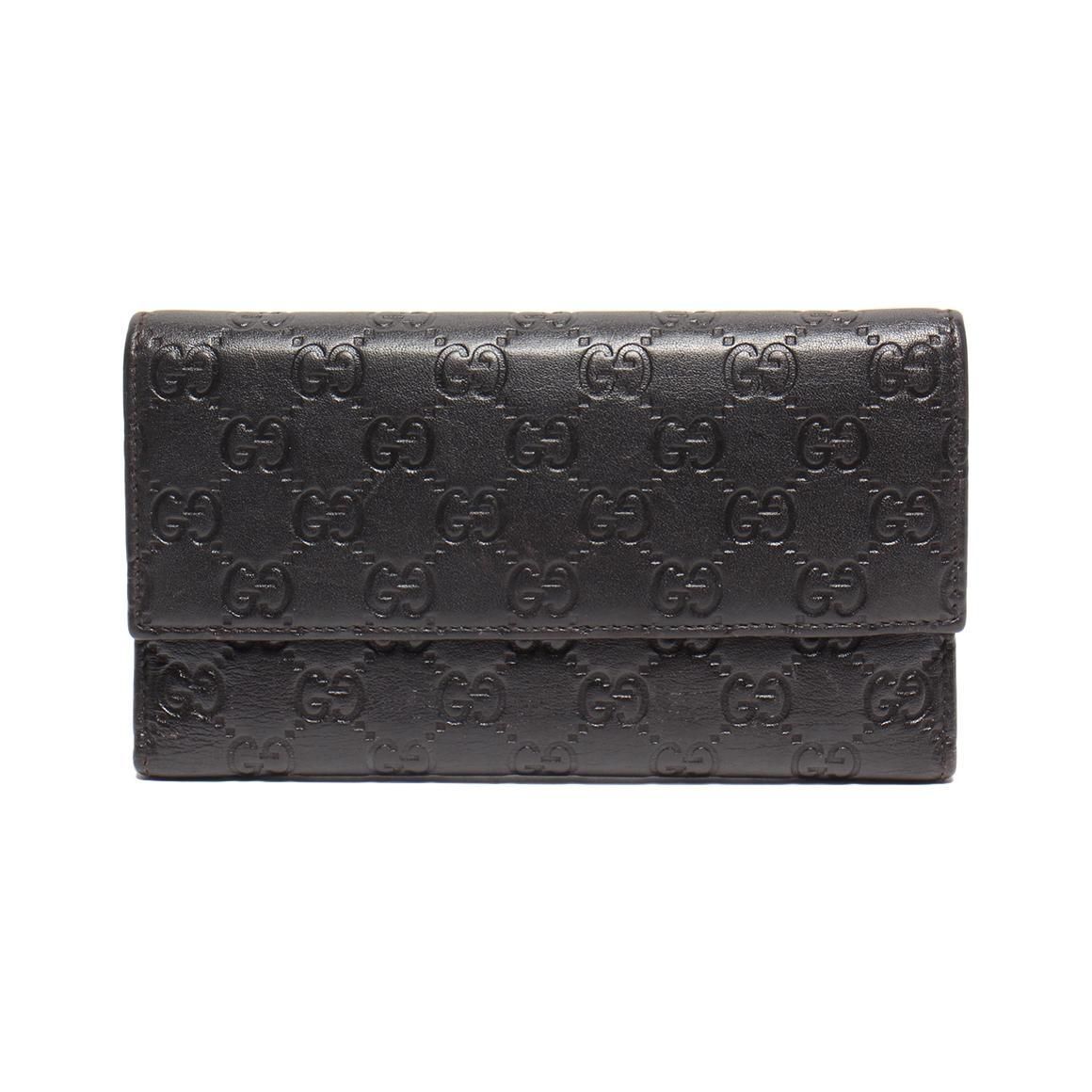 CONDITION Fair Good Very Good Great Excellent Pristine Condition Details No significant scratches on the exterior, no noticeable stains on the interior, overall in good condition. Serial Model • No Chip Authentication • Entrupy OVERVIEW Exterior Color Black Exterior Material Leather Lining Color Black Lining Material Leather Handle/Strap Color None Handle/Strap Material None Hardware Color Gold Closure Fold Over Snap Pattern Guccissima Signature Size 3 x 7.5 x 1 inches Introducing the Gucci Signature Guccissima Black Clutch Fold Over Wallet, a timeless accessory crafted from premium black leather featuring the iconic Guccissima pattern. Designed for women, this elegant wallet measures 3 x 7.5 x 1 inches and is accented with luxurious gold hardware. The fold-over snap closure ensures secure storage, while the leather lining enhances durability. This pre-owned piece is authenticated by Entrupy and rated 8.5/10 in condition, with no significant exterior scratches or interior stains, reflecting its excellent quality. A sophisticated addition to any collection, combining practicality with classic Gucci style.