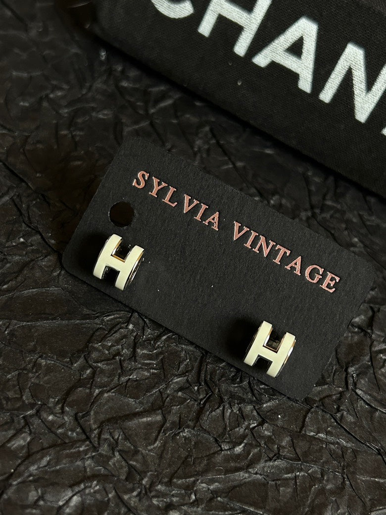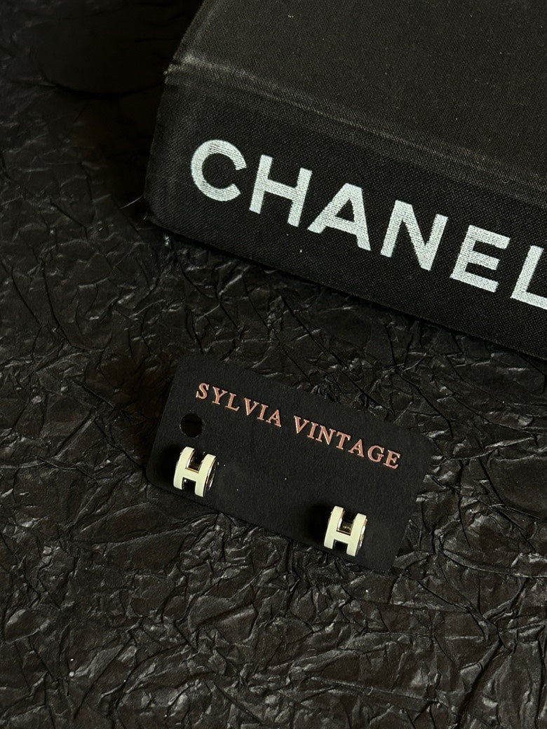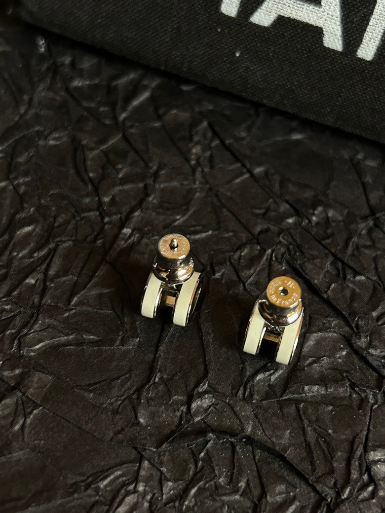 Hermes White Mini Pop H Stud Earrings 0.7cm×1cm
