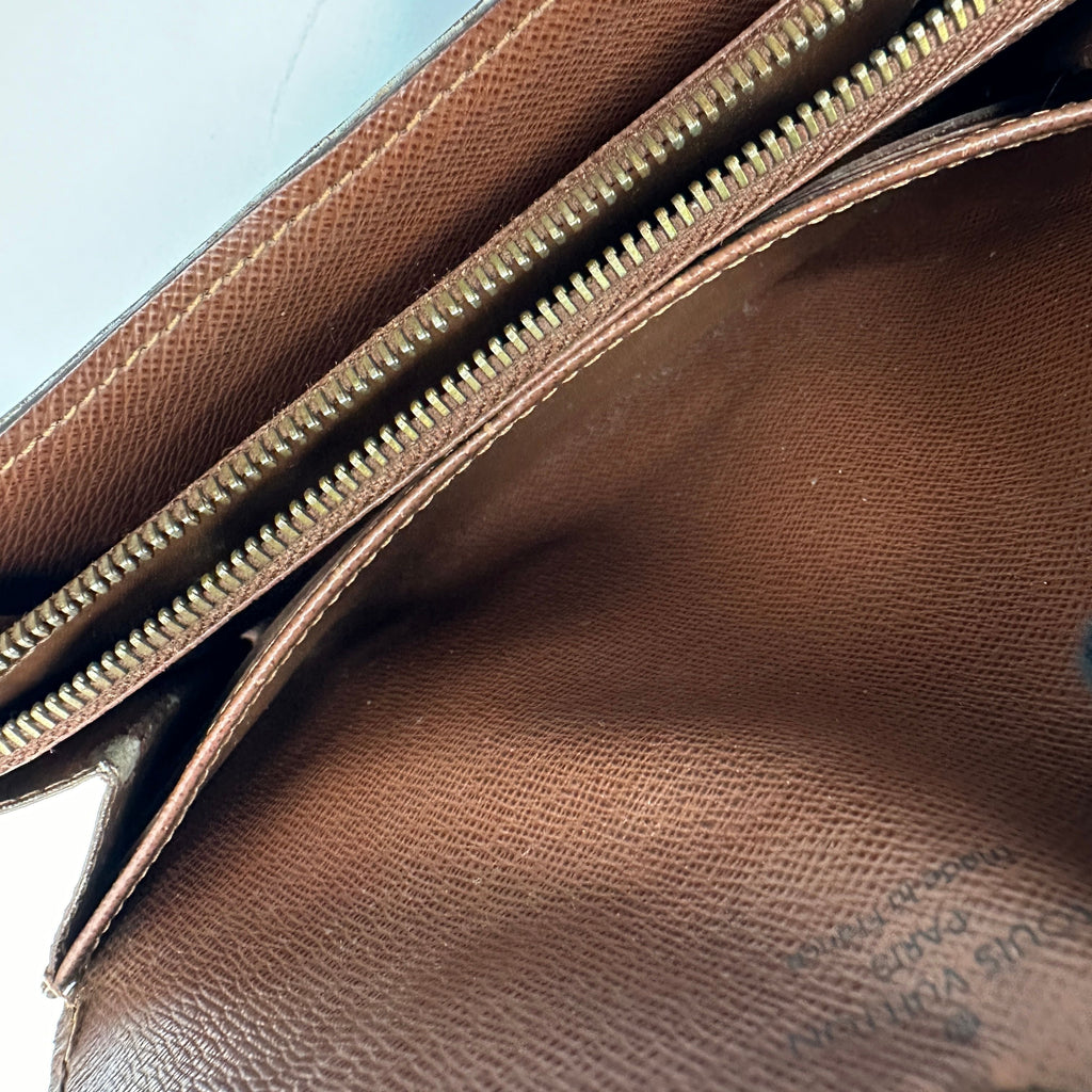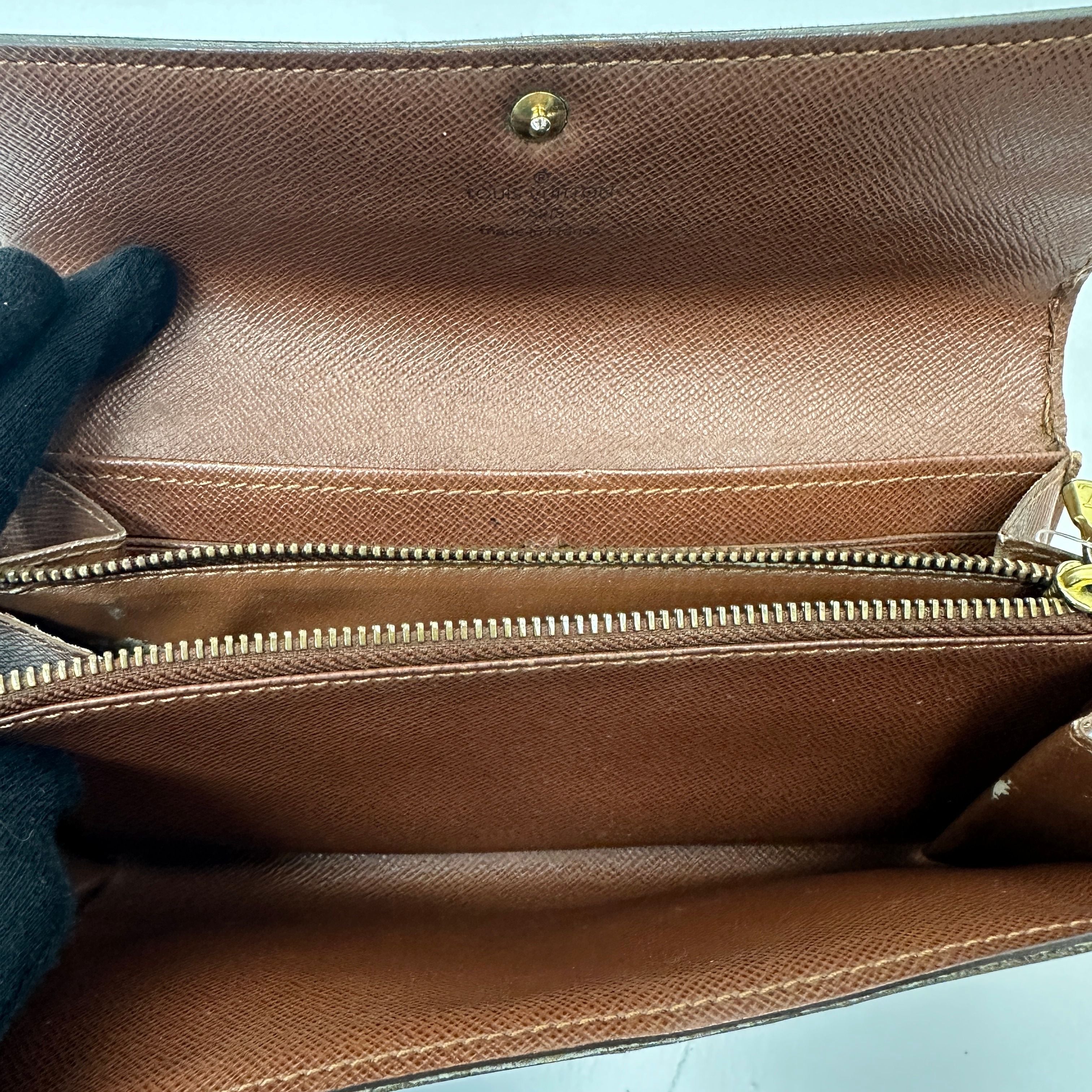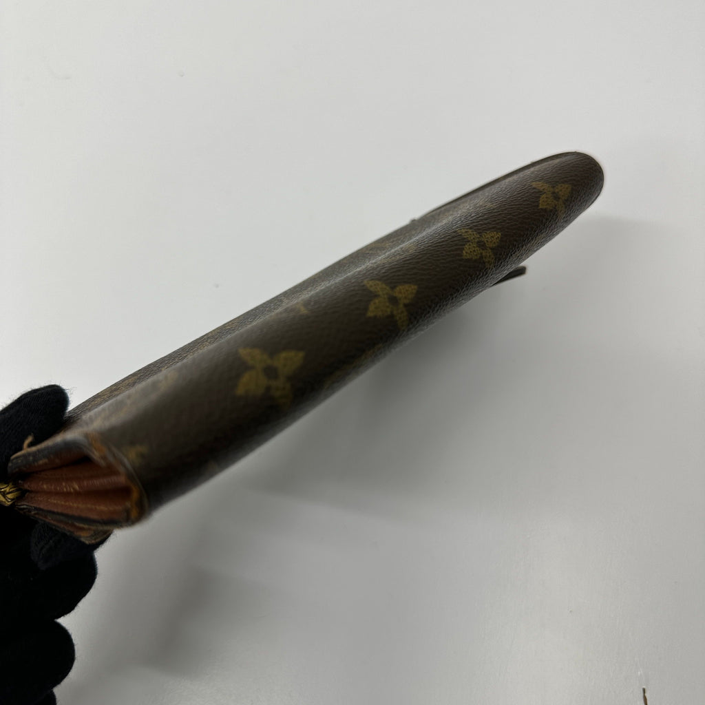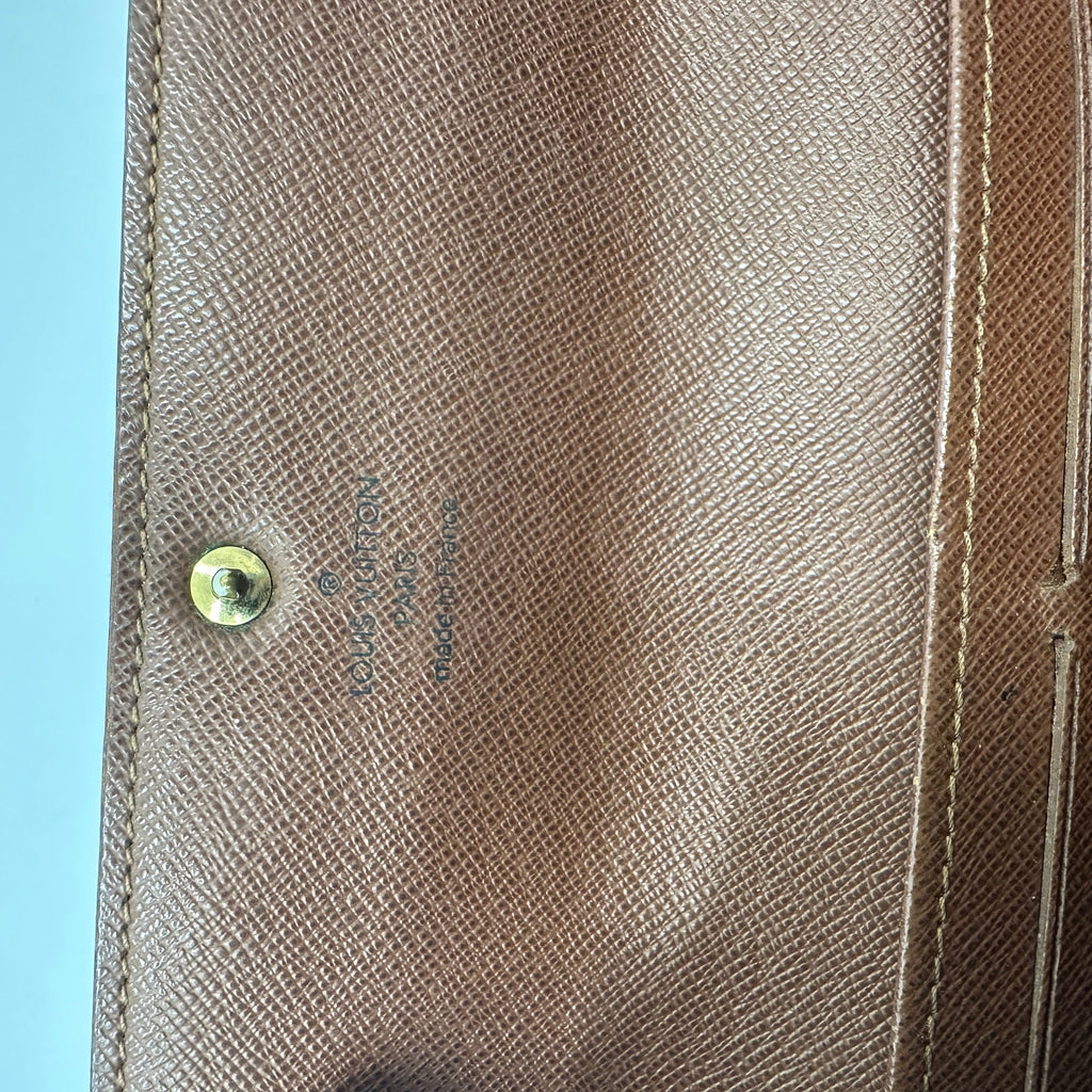 CONDITION Fair Good Very Good Great Excellent Pristine Condition Details No significant scratches on the exterior, no noticeable stains on the interior, overall in good condition. Serial Model • No Chip Authentication • Entrupy OVERVIEW Exterior Color Brown Exterior Material Monogram Canvas Lining Color Brown Lining Material Leather Handle/Strap Color N/A Handle/Strap Material N/A Hardware Color Gold Closure Snap Pattern Monogram Size 4.1 x 7.5 x 0.8 inches Discover timeless elegance with the Authentic Louis Vuitton Long Wallet, a quintessential accessory from the renowned Monogram line. Crafted from iconic monogram canvas with a luxurious leather lining, this unisex wallet exudes sophistication. Its compact size of 4.1 x 7.5 x 0.8 inches is perfect for daily use. Despite being used, the wallet remains in great condition, rated 8.5/10, with no significant scratches or stains. The gold hardware adds a touch of elegance, while the snap closure ensures security. Authenticated by Entrupy, this wallet is a testament to Louis Vuitton's enduring quality and style.