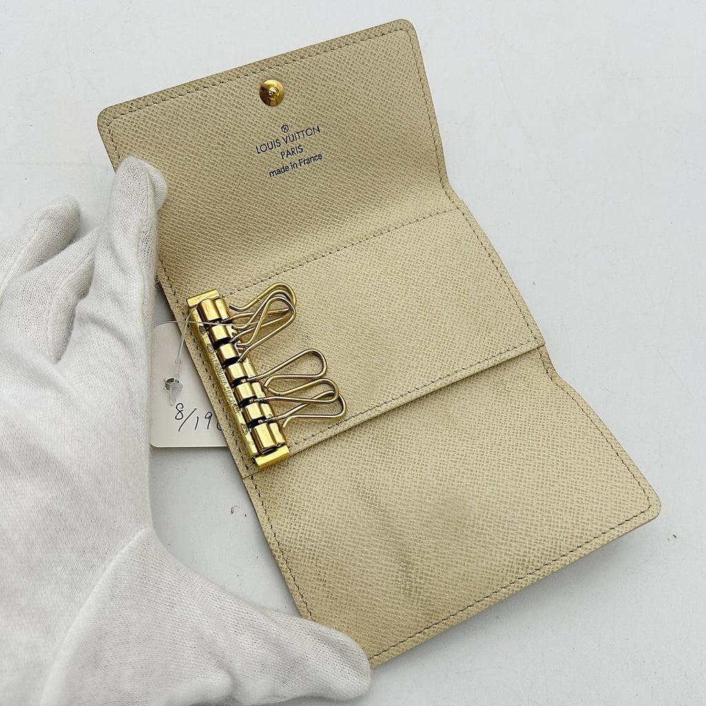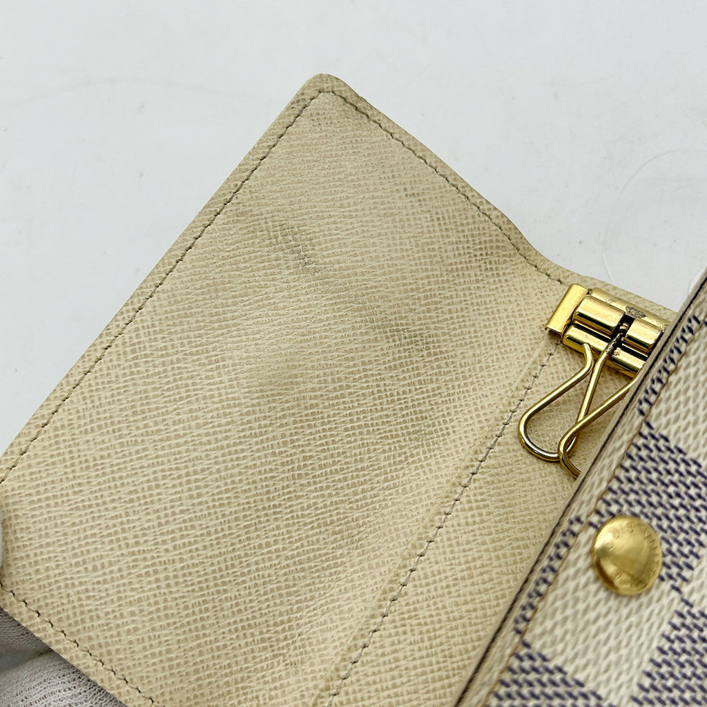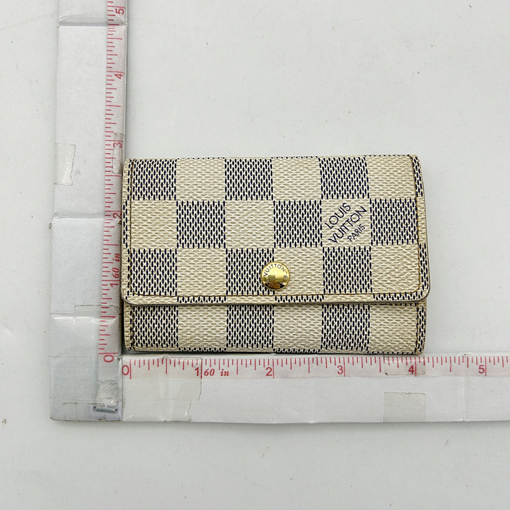 Louis Vuitton Damier Azur White Checkered 6 Key Hook Holder Pouch Wallet lv8808ed