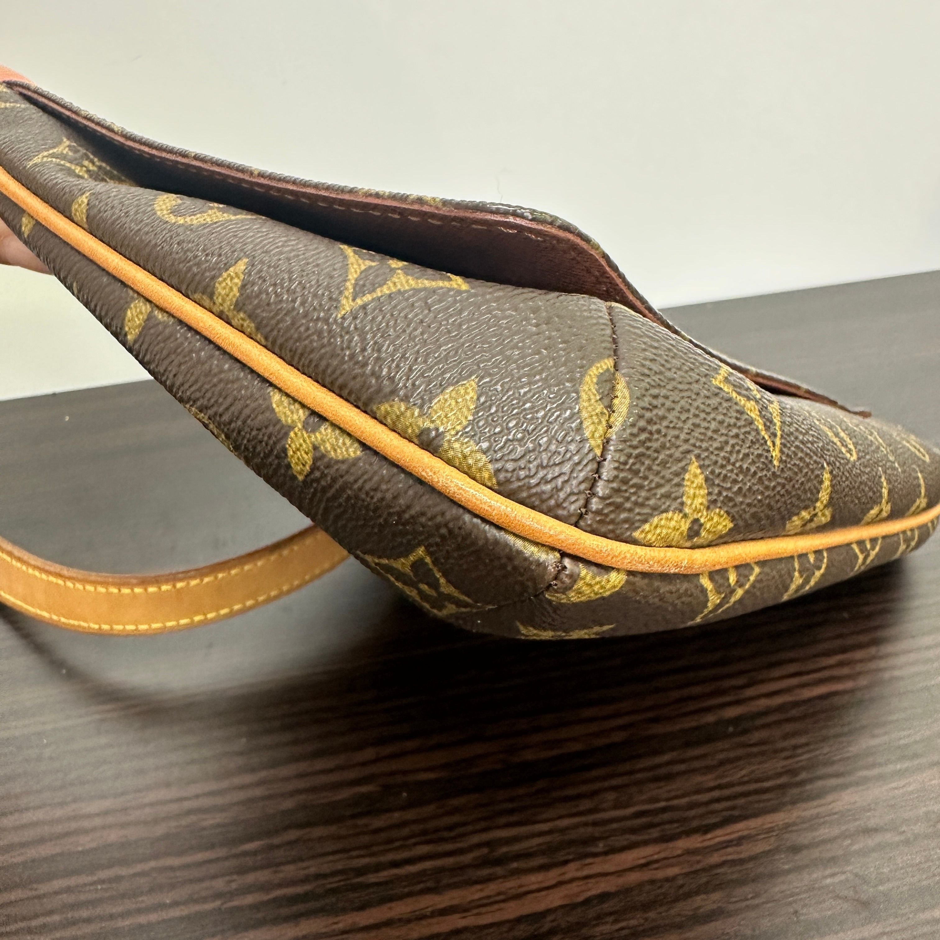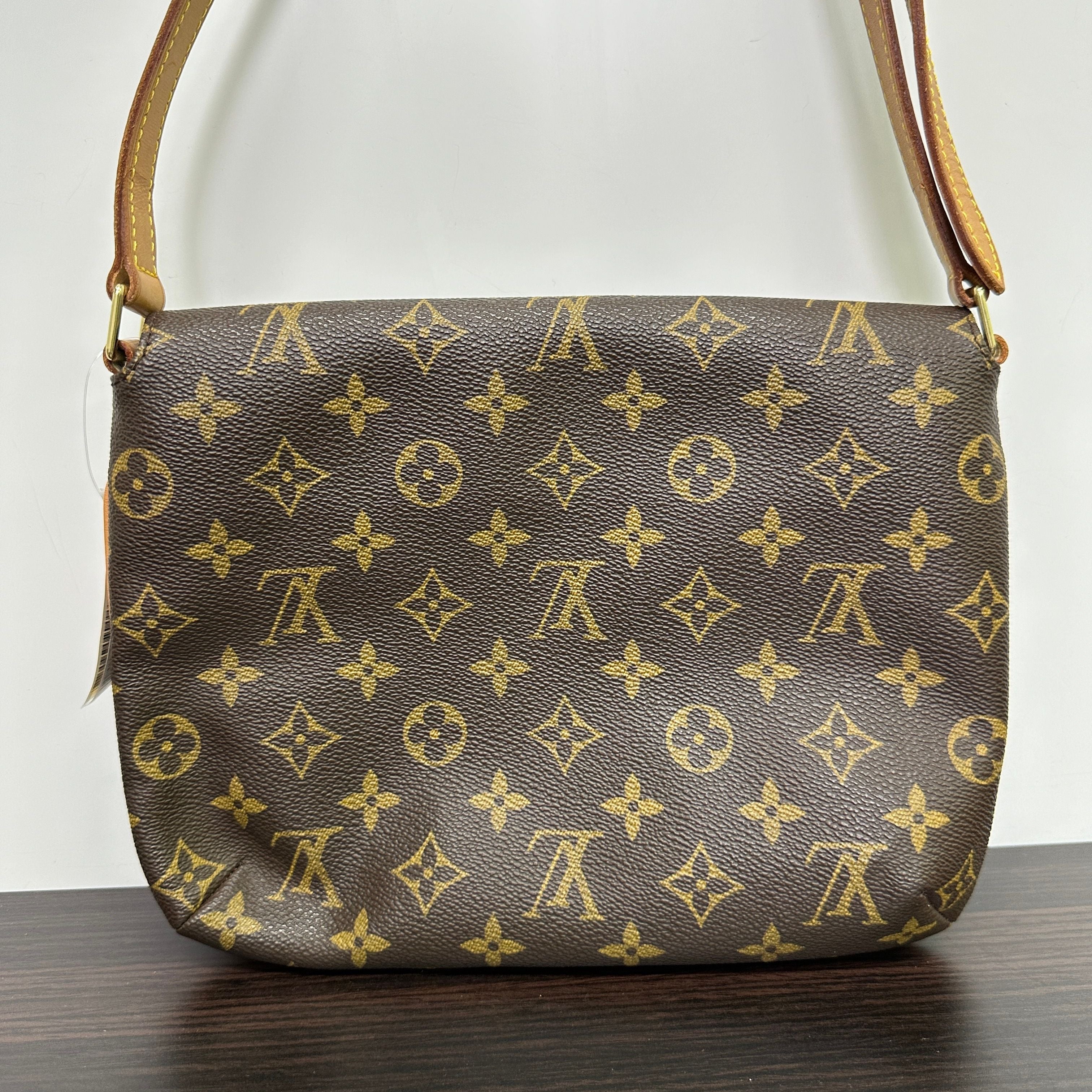 CONDITION Fair Good Very Good Great Excellent Pristine Condition Details No significant scratches on the exterior, no noticeable stains on the interior, overall in good condition. Serial Model • No Chip Authentication • Entrupy OVERVIEW Exterior Color Brown Exterior Material Coated Canvas Lining Color Red Lining Material Textile Handle/Strap Color Brown Handle/Strap Material Leather Hardware Color Gold Closure Flap with Magnetic Snap Pattern Monogram Size 9.8 x 7.5 x 2.4 Discover the elegance of the Louis Vuitton Monogram Musette Tango, a distinguished round shoulder bag crafted from durable coated canvas in a classic brown monogram pattern. This pre-owned piece, rated 8.5/10 for condition, exhibits no significant exterior scratches and maintains a clean, stain-free red textile lining. Featuring a brown leather strap, gold hardware, and a secure flap with magnetic snap closure, it combines both style and functionality. Perfectly sized at 9.8 x 7.5 x 2.4 inches, this women's accessory exemplifies timeless luxury with Entrupy authentication ensuring its authenticity.