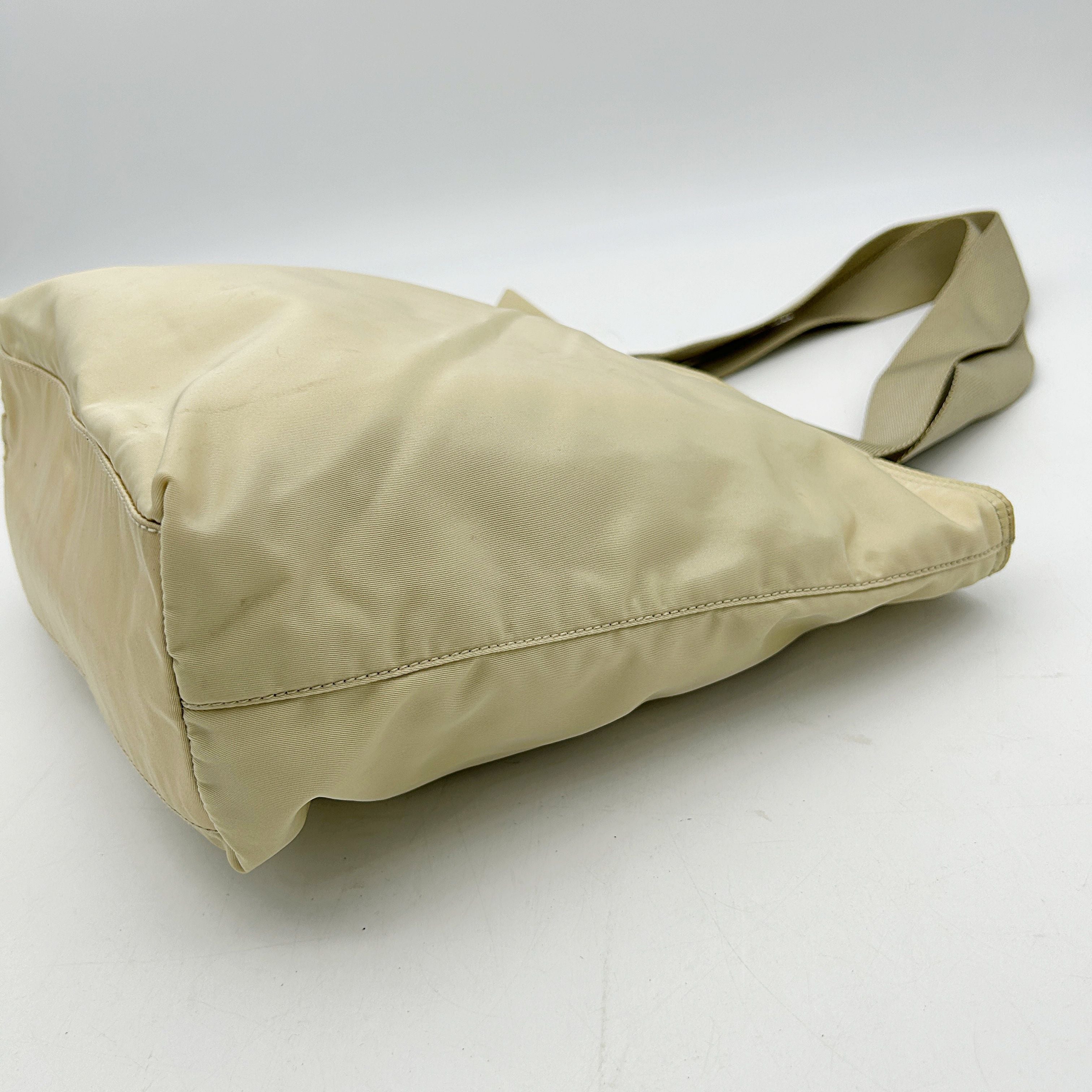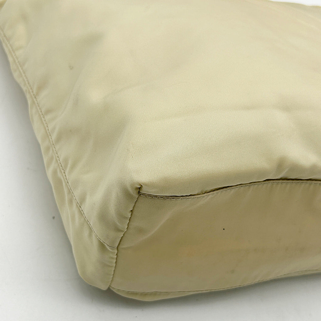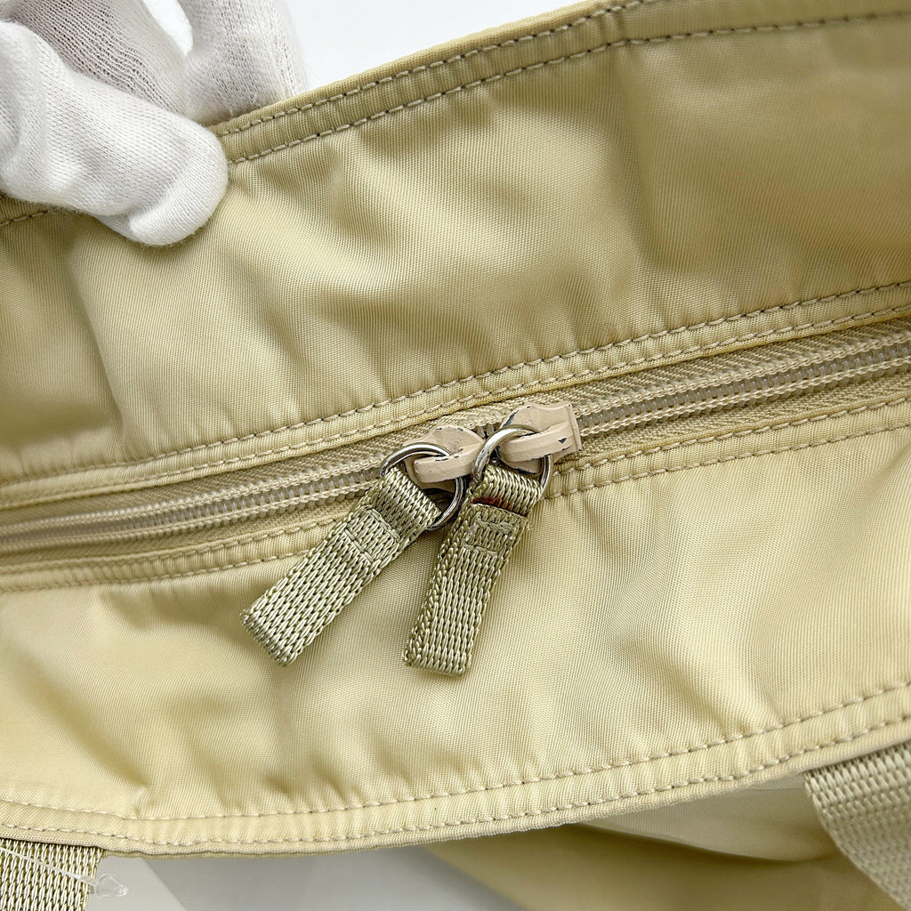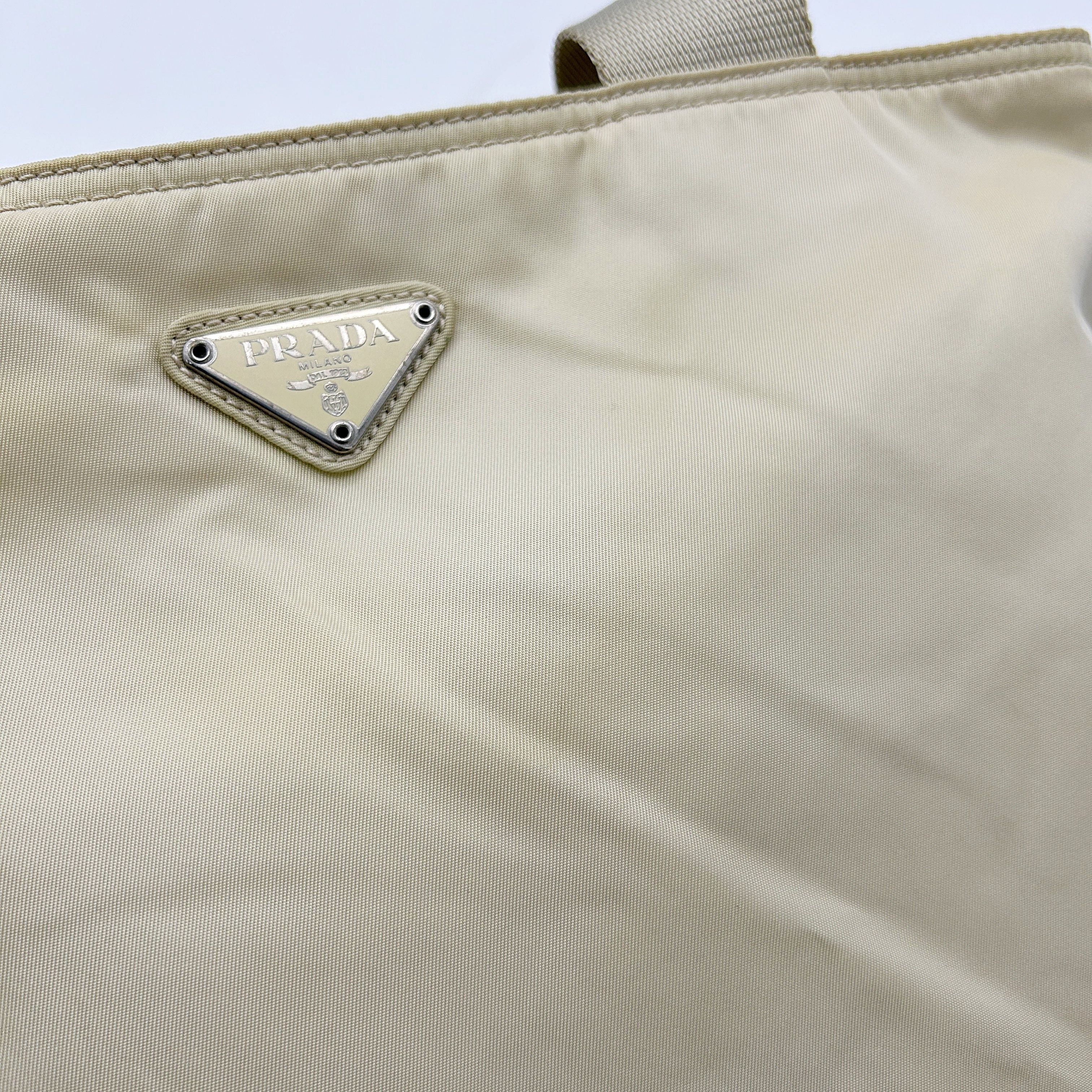 CONDITION Fair Good Very Good Great Excellent Pristine Condition Details There is dirt on the outside, but no noticeable dirt on the inside. Serial Model • No Chip Authentication • Entrupy OVERVIEW Exterior Color Khaki Exterior Material Nylon Lining Color Khaki Lining Material Fabric Handle/Strap Color Khaki Handle/Strap Material Nylon Hardware Color None Closure Zipper Pattern Solid Size 12 x 14 x 6 inches Introducing the PRADA Tote Bag in Khaki, a sophisticated addition to any wardrobe. Crafted from durable nylon, this pre-owned tote boasts a timeless design, perfect for the modern woman. Measuring 12 x 14 x 6 inches, it provides ample space for your essentials. While the exterior shows some signs of wear, the interior remains pristine, reflecting its excellent condition rating of 8.5/10. This authentic Prada piece, verified by Entrupy, features a solid pattern and a secure zipper closure. Elevate your style with this elegant and versatile tote, embodying the luxury and craftsmanship of the Prada brand.