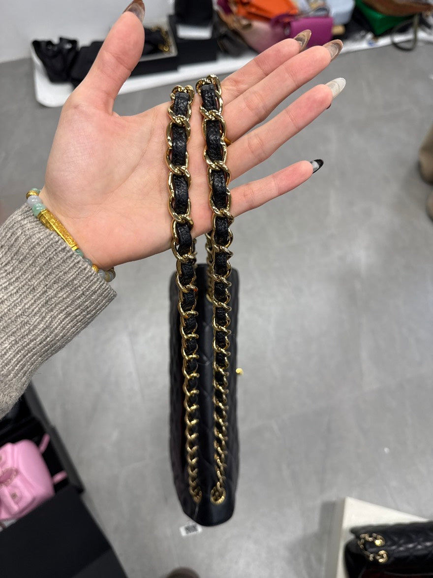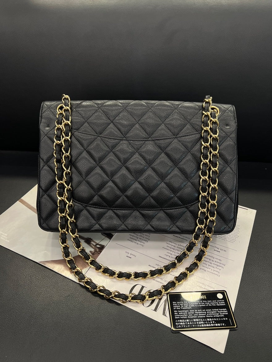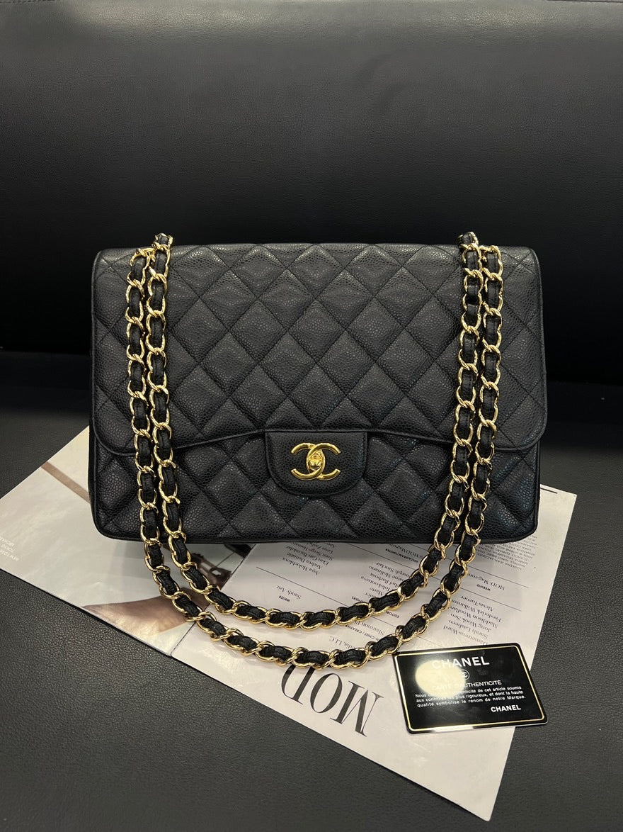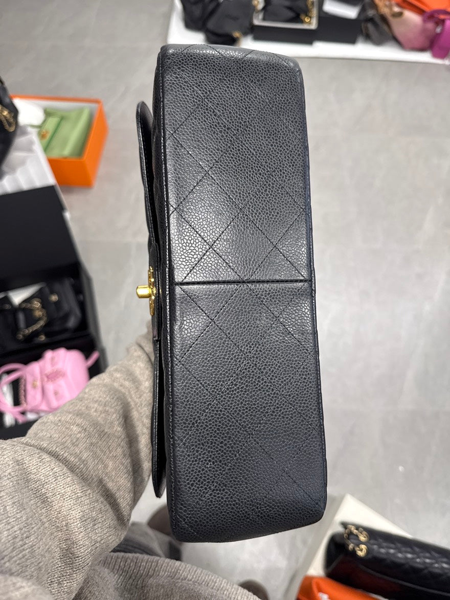 pre-loved🍒 Chanel Black Gold Double Flap Jumbo, D462#