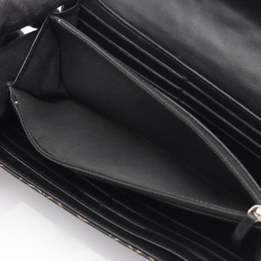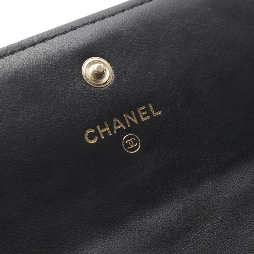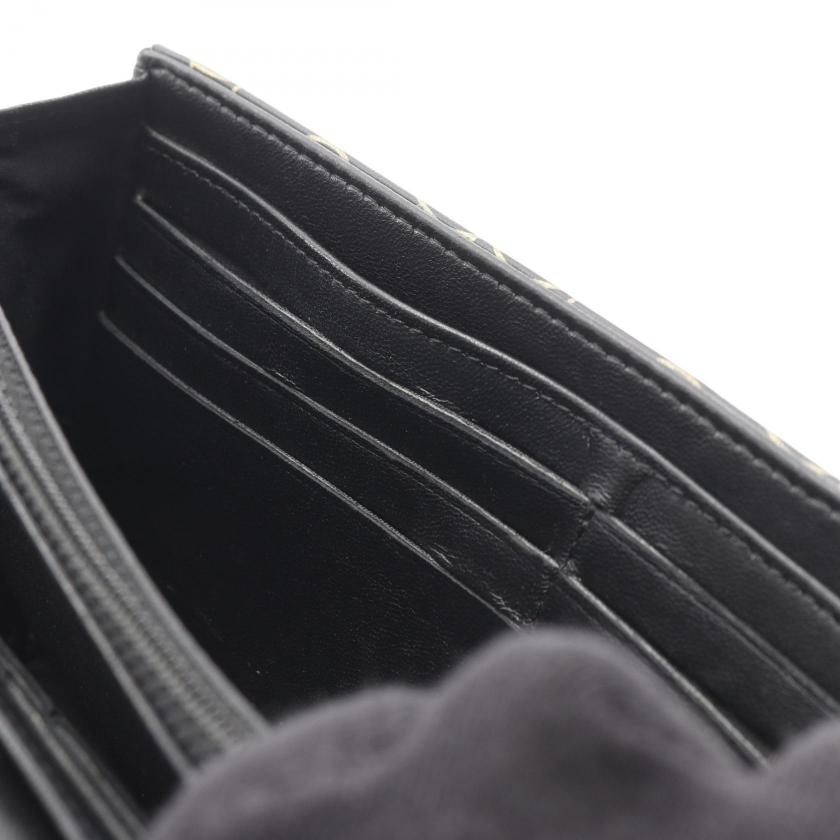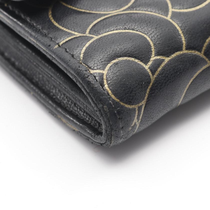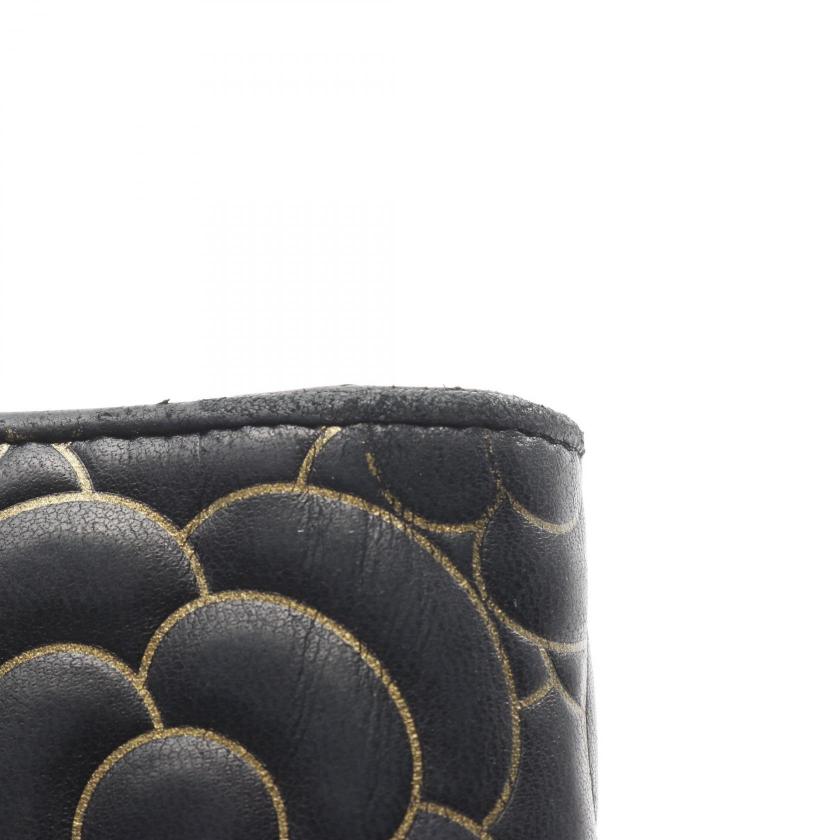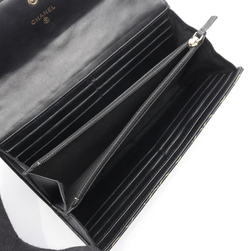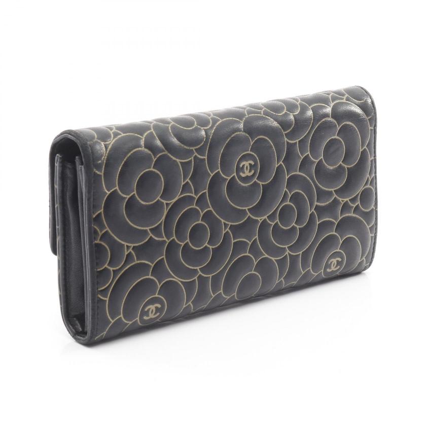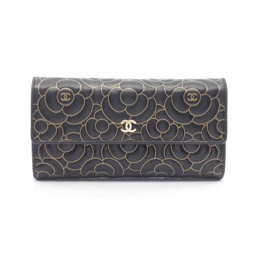 Pre-loved CHANEL coco mark camellia Bi-fold Long Wallet lambskin black gold gold hardware 2104102444026