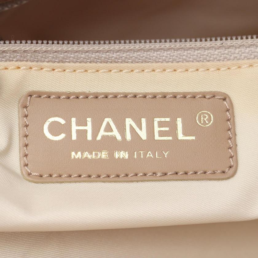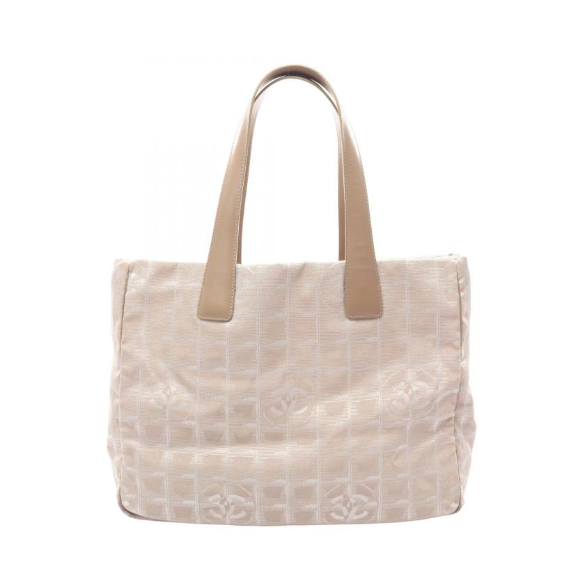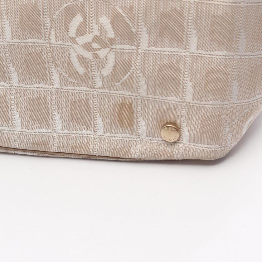 Pre-loved CHANEL New travel line MM Handbag tote bag nylon canvas leather beige gold hardware 2101219246796