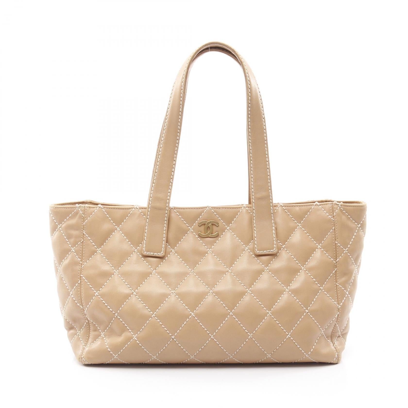 Pre-loved CHANEL wild stitch Handbag tote bag leather beige gold hardware 2101219274133