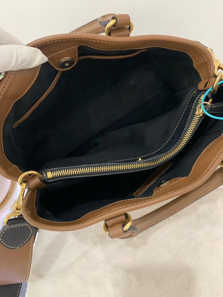 Preloved Burberry Double-Sided Open Tote Bag in Beige Plaid Canvas