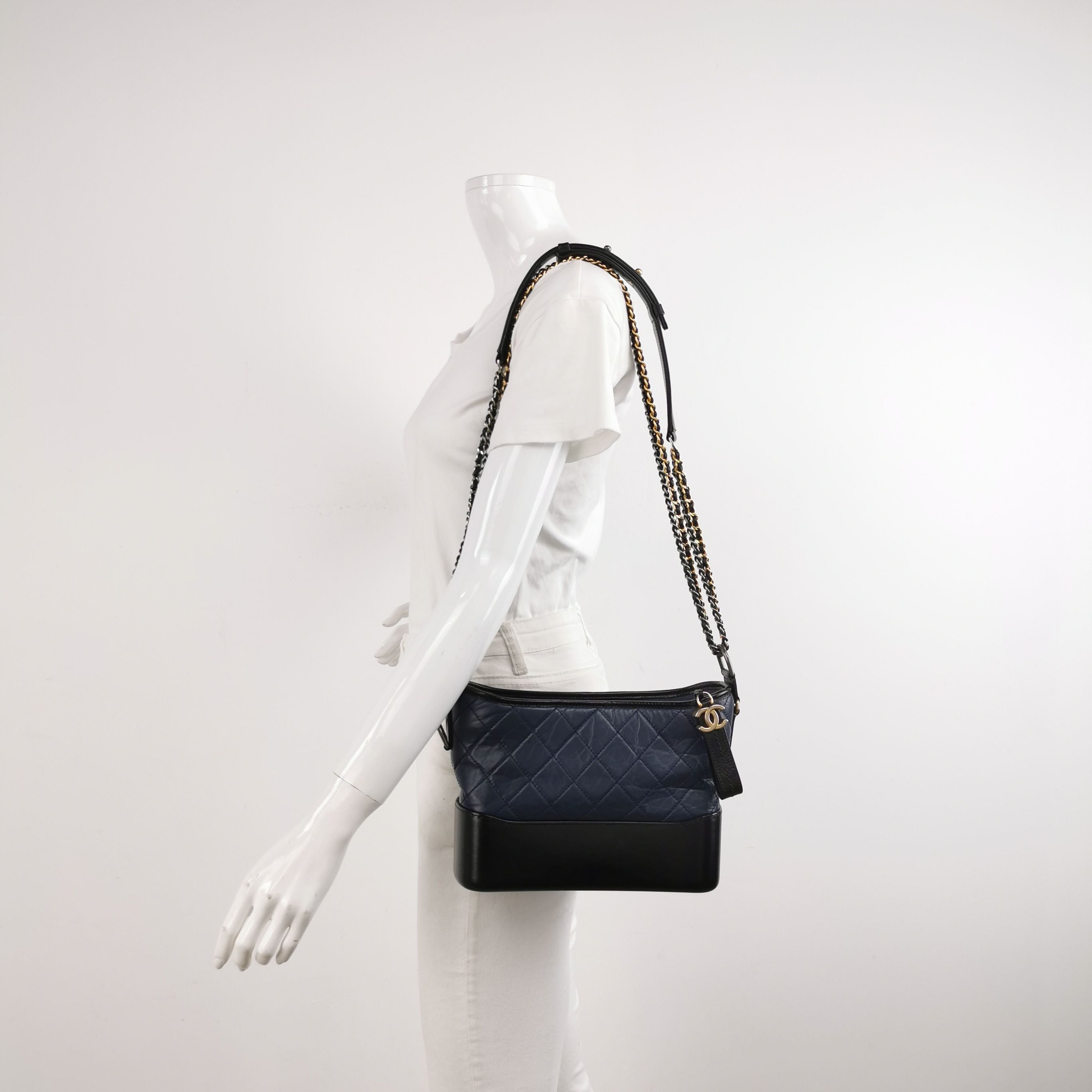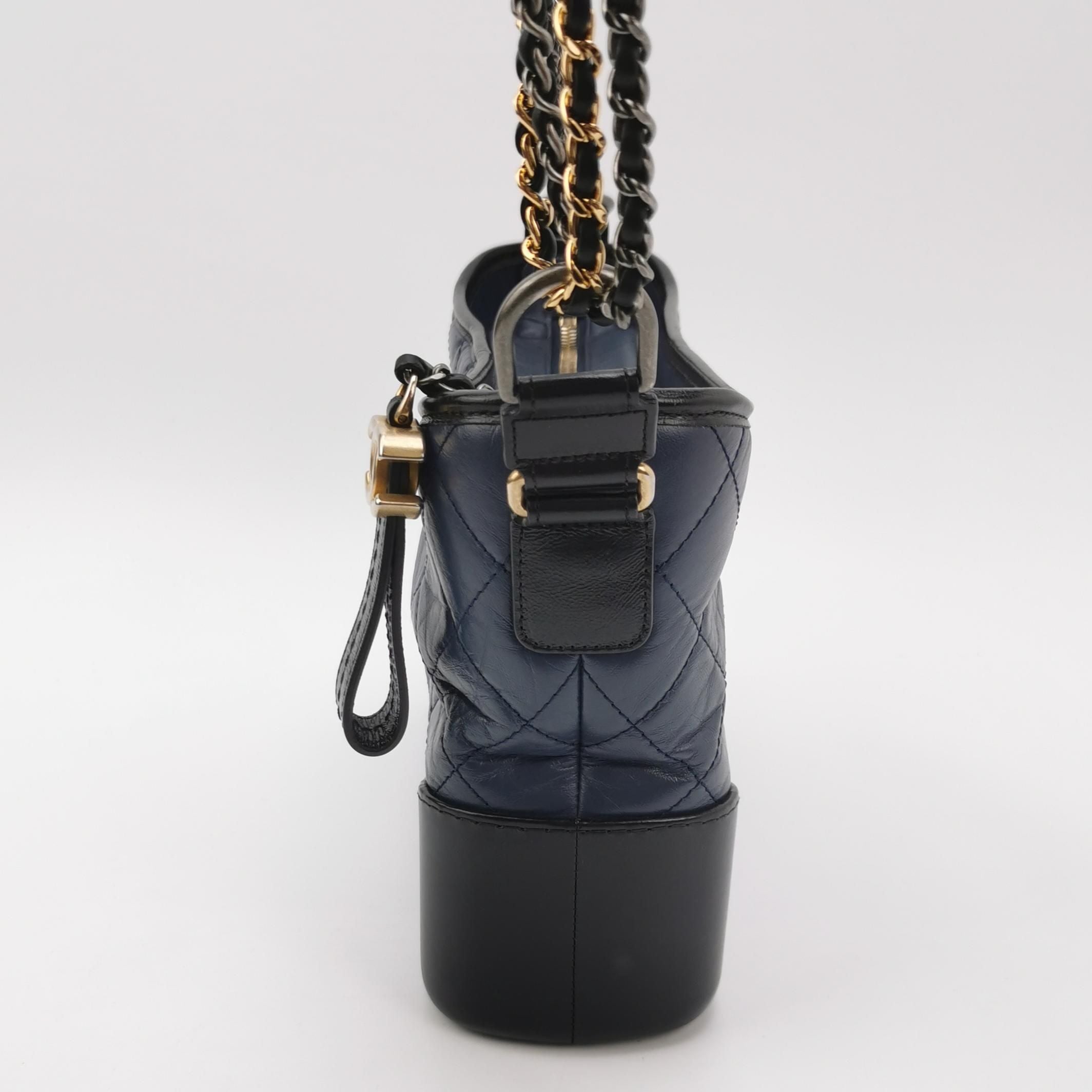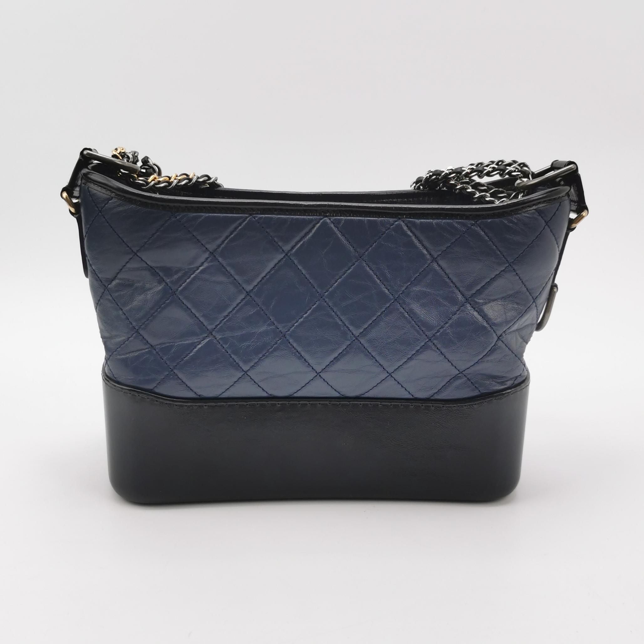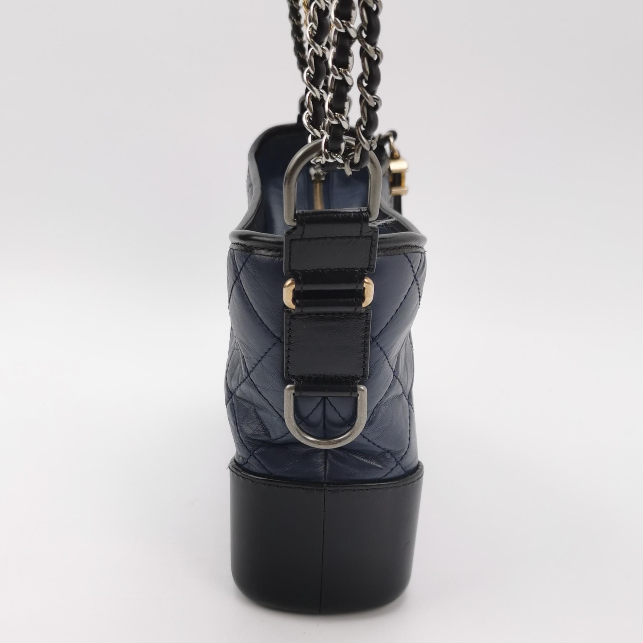 CONDITION Fair Good Very Good Great Excellent Pristine Condition Details Minor overall wear on the body, minor hardware wear, minor interior stains, moderate strap wear Serial Model • 29174933 Authentication • None OVERVIEW Exterior Color As Shown Exterior Material Waxed Leather Lining Color As Shown Lining Material As Shown Handle/Strap Color As Shown Handle/Strap Material Leather Hardware Color As Shown Closure Snap Pattern Quilted Size 24 x 18.5 x 8 cm The Preloved Chanel Gabrielle Hobo is a luxurious medium-sized crossbody bag crafted from exquisite waxed leather, featuring a quilted pattern and dual chain design. With dimensions of 24 x 18.5 x 8 cm, it offers ample space for your essentials. The bag is rated 9.5/10 for condition, indicating it has minor signs of wear such as slight overall wear on the body, minor hardware wear, minor interior stains, and moderate strap wear, but remains in excellent shape overall. This elegant accessory comes with an adjustable strap and an authenticity card, making it a timeless piece for any fashion-forward individual.