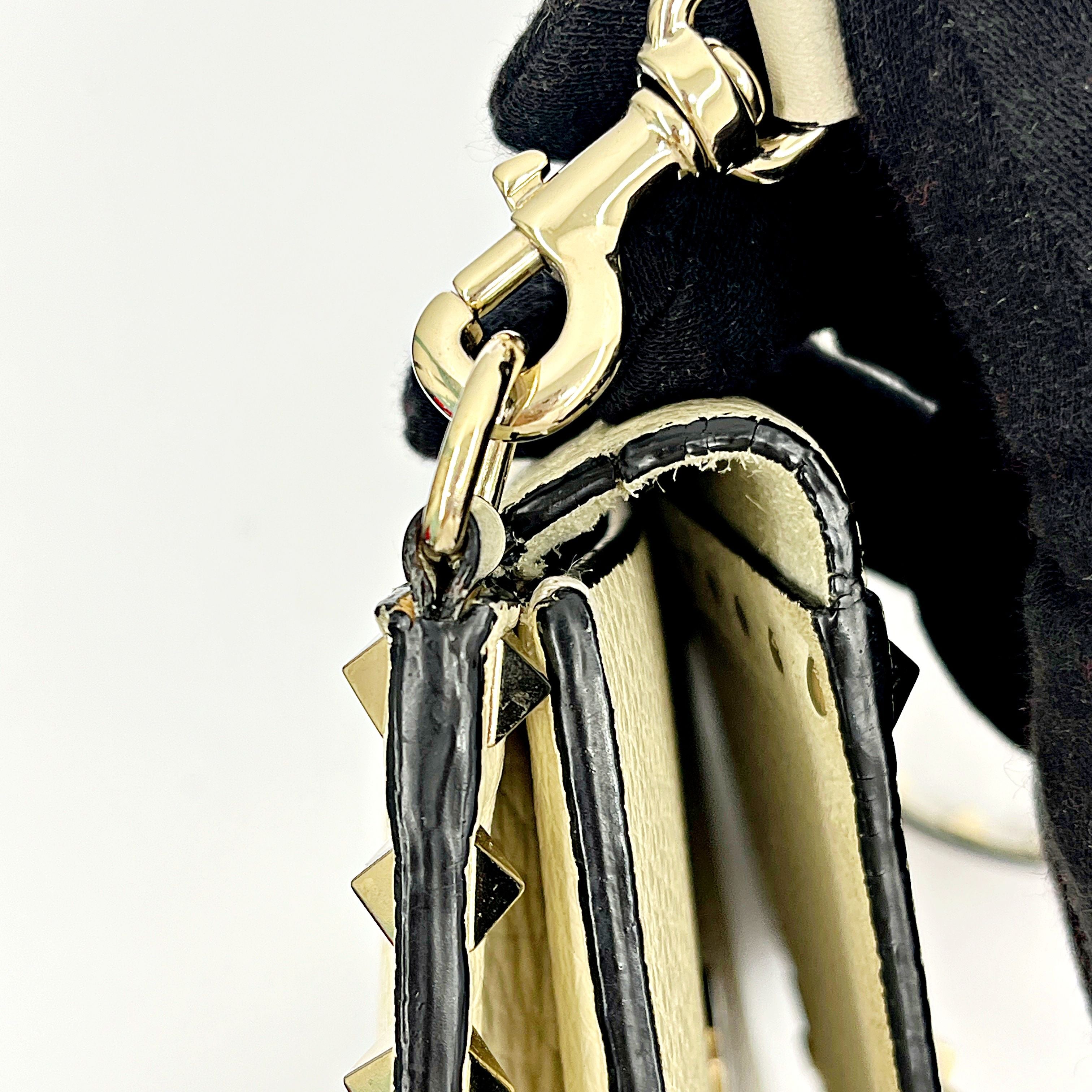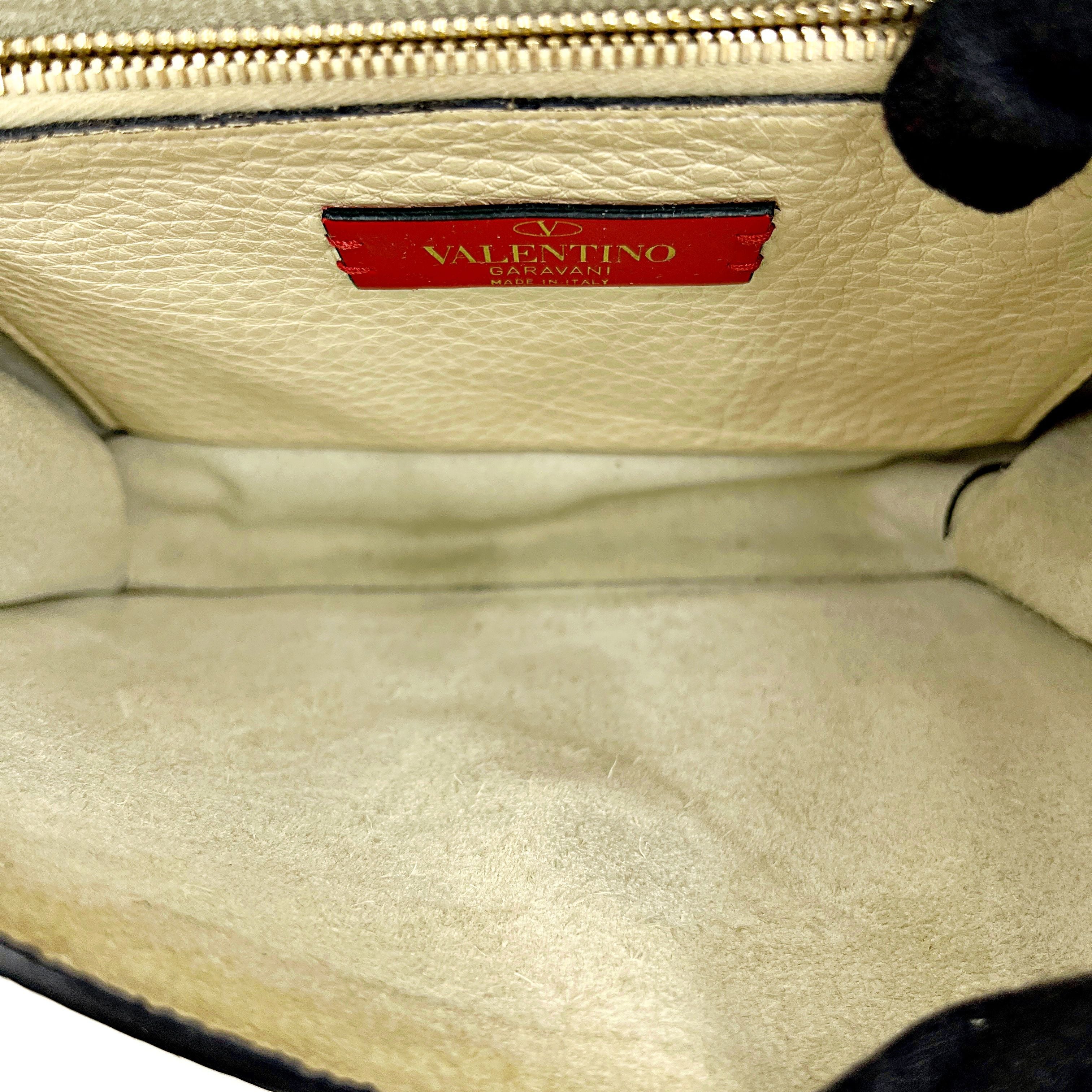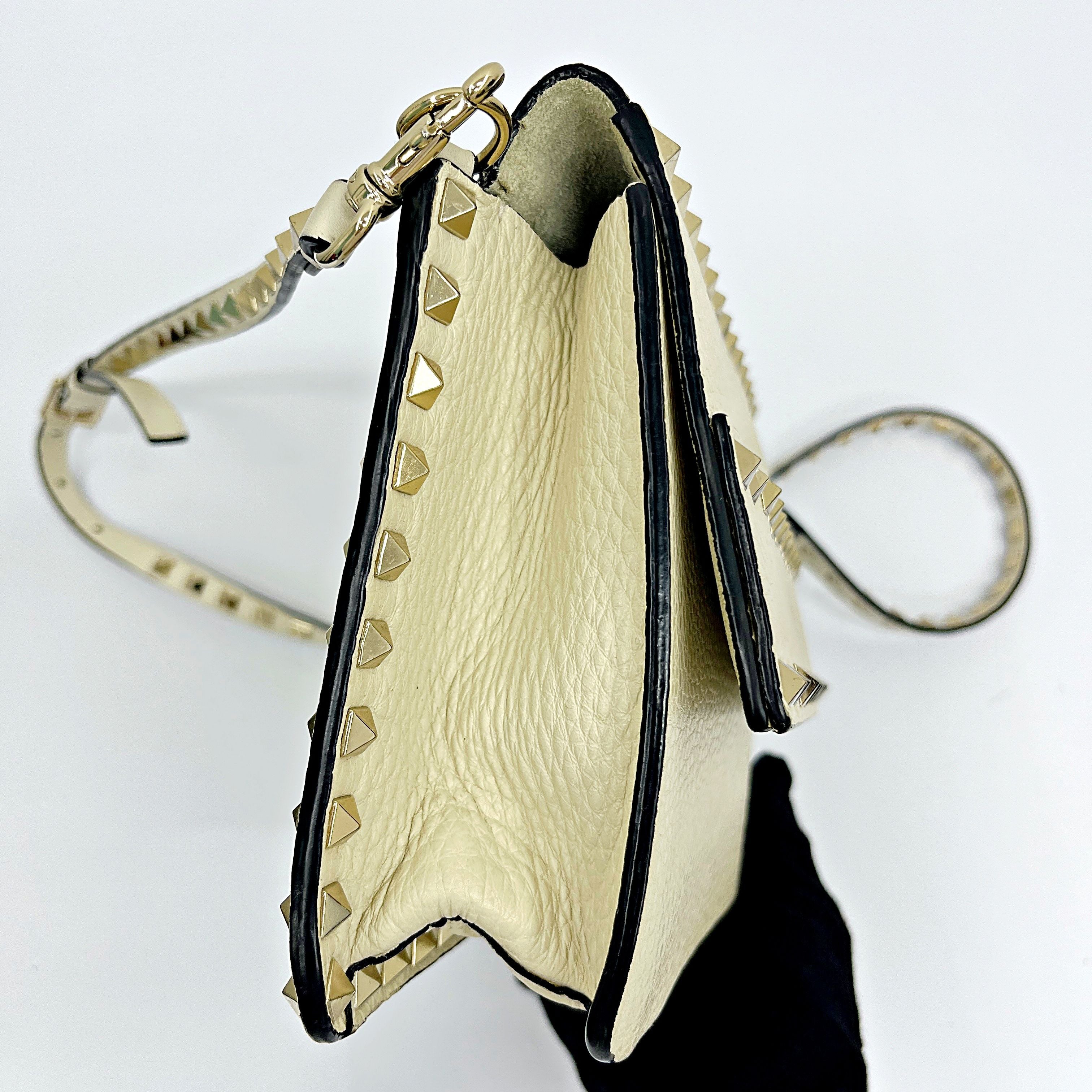 CONDITION Fair Good Very Good Great Excellent Pristine Condition Details The exterior has minor scratches and some stains, while the interior shows wear and stains. Serial Model • No Chip Authentication • Entrupy OVERVIEW Exterior Color White Exterior Material Grained Calfskin Lining Color Beige Lining Material Leather Handle/Strap Color White Handle/Strap Material Leather Hardware Color Gold Closure Flap Pattern Solid Size 6.5 x 9.5 x 3 inches Discover timeless elegance with the Valentino Garavani Grained Calfskin Small Rockstud Flap, a sophisticated round shoulder bag from the renowned Rockstud line. Crafted from luxurious white grained calfskin, this bag features a chic solid pattern and exquisite gold hardware. The beige leather interior, though showing signs of wear and stains, complements the exterior beautifully. Despite minor scratches and stains on the outside, the bag remains in very good condition, rated 8/10. Expertly authenticated by Entrupy, this used piece is a testament to Valentino Garavani's impeccable craftsmanship and style, perfect for the discerning woman.